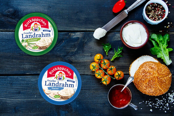 Rotkäppchen bedeutet Käsegenuss für die ganze Familie und jede Gelegenheit. In der Käserei Altenburger Land werden die beliebten Rotkäppchen Produkte "Frischer Landrahm" in den Sorten Natur und Kräuter hergestellt. Ein besonders cremiger und frischer Brotaufstrich, der auch beim Kochen jedes Gericht verfeinert. Als echter Allrounder einigt sich der Frische Landrahm mit seiner mild säuerlichen Geschmacksnote ebenfalls gut als Dip zu Gemüsesticks oder als Grundlage für frische Dressings.