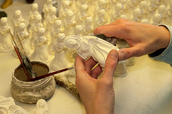 Figuren ab cirka zwölf Zentimeter Höhe entstehen als Hohlkörper im Gießverfahren.