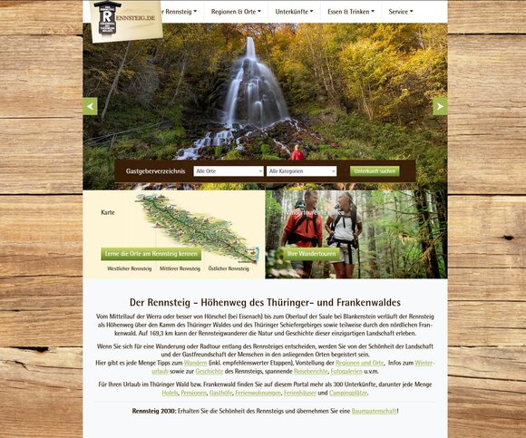 Hier gibt es unter anderem geschichtliche Hintergründe, Vorschläge für Wanderetappen, tolle Fotogalerien, Videos, lesenswerte Reiseberichte von Rennsteigwanderern sowie mehr als 350 Unterkünfte in Rennsteignähe (Hotels, Pensionen, Gasthöfe, Ferienwohnungen, Ferienhäuser, Campingplätze).