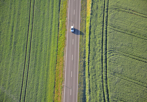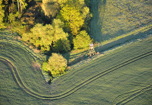 Über Rapsfelder und frisch ergrünte Wälder sinkt der Ballon langsam nach unten, bevor dieser schließlich ganz sanft auf einem Feldweg landet.