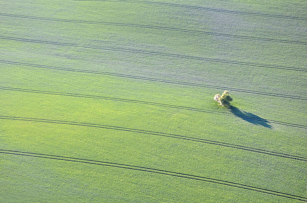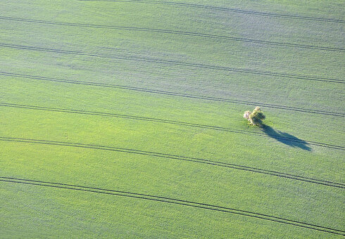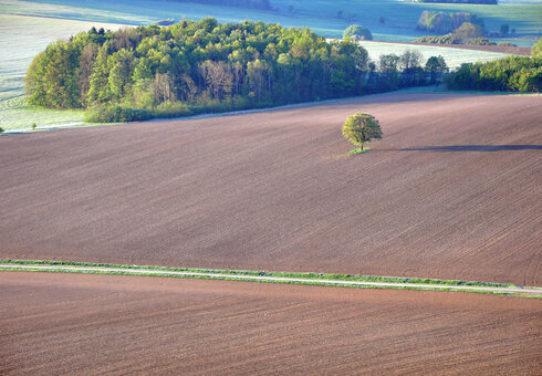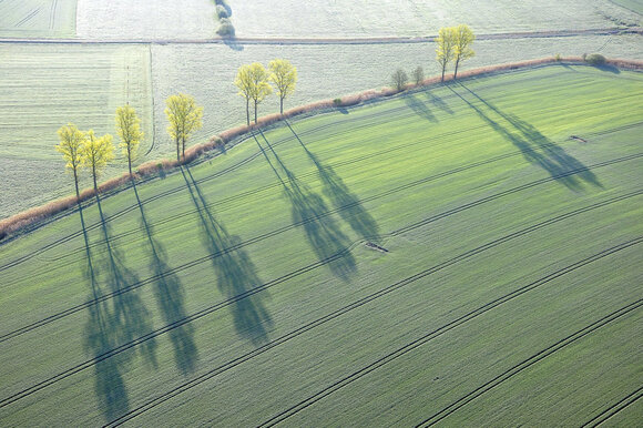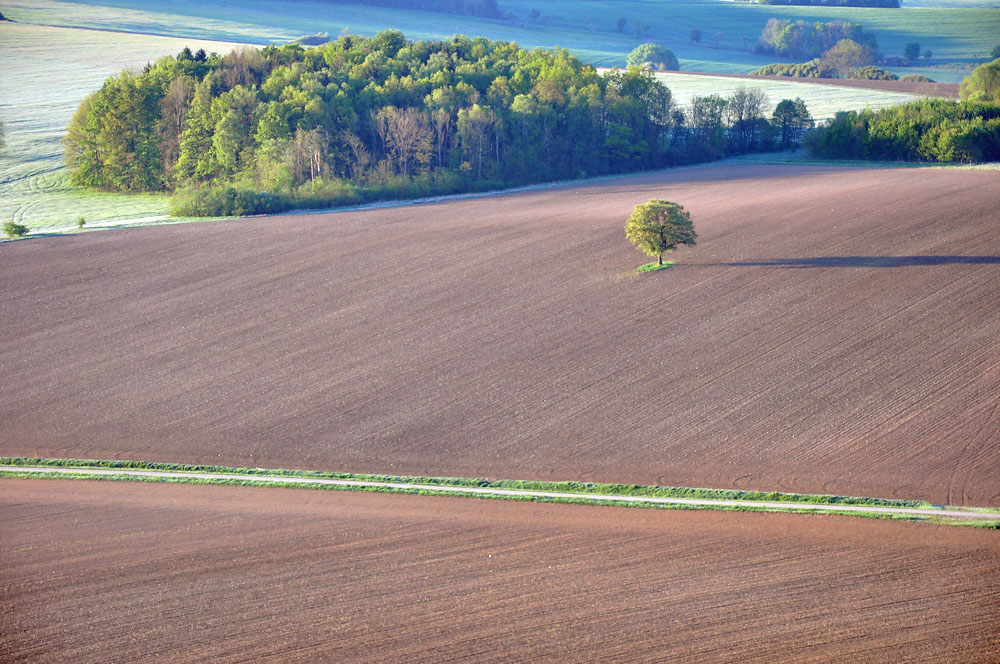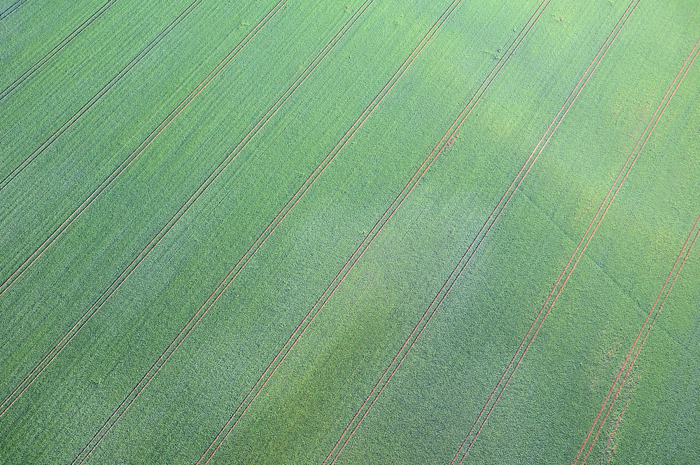 In den Feldern erkennt man interessante Spuren und Linien, welche die landwirtschaftlichen Geräte hier hinterlassen haben.