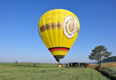 Begleitet wird ein Ballon in der Regel von einem Bodenteam, welches mit Angänger und Kleinbus den Abenteurern in der Luft hinterher fährt. Per Funk gibt es ständig Kontakt mit dem Piloten, der von oben den besten Überblick über einen potentiellen Landeplatz hat.