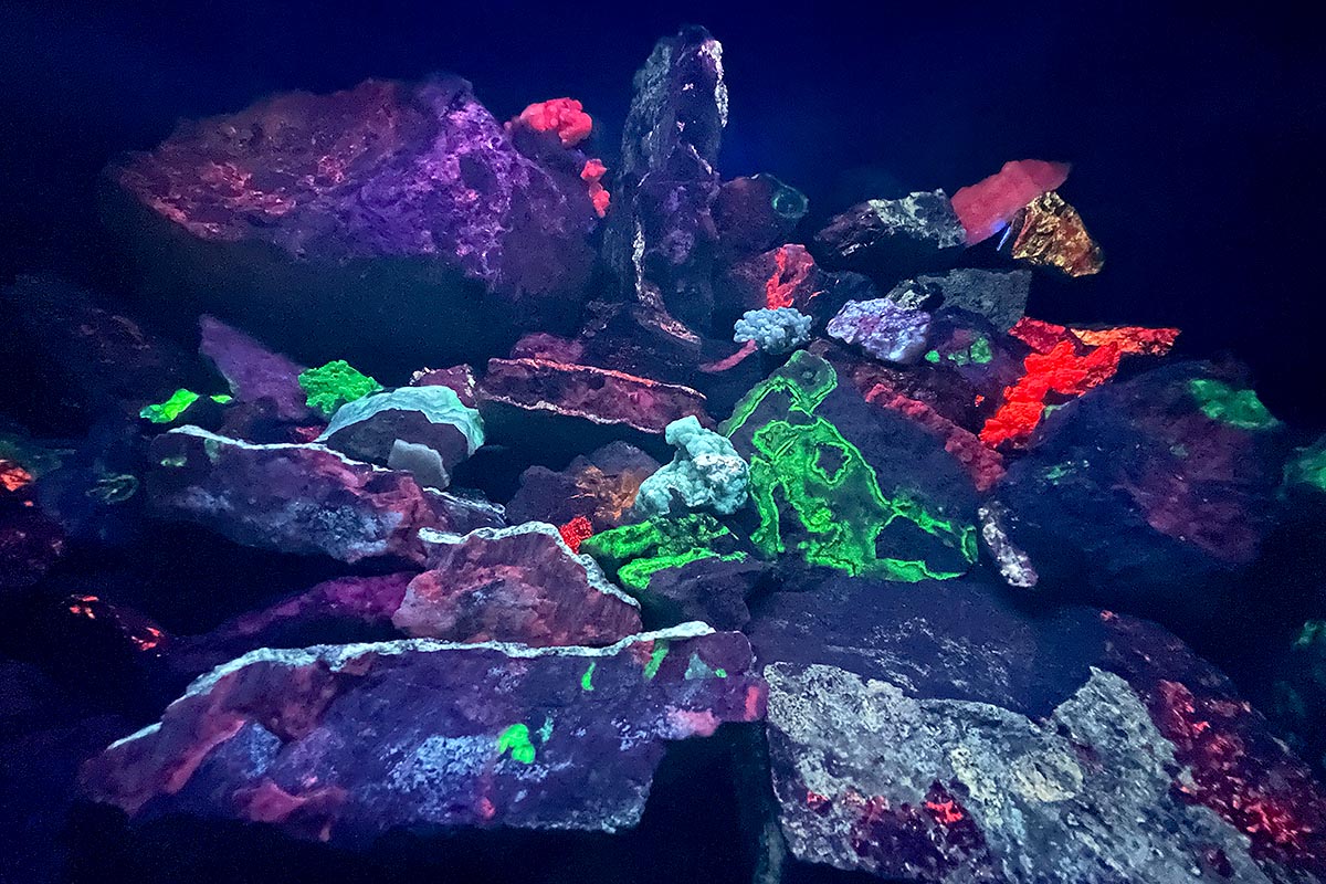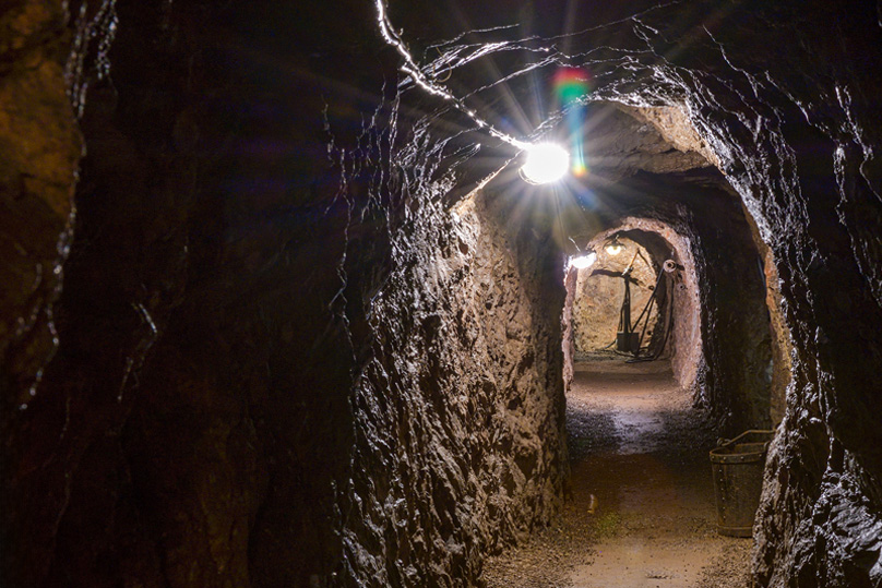 350 Meter erschlossenes Grubengebäude der ehemaligen Eisen- und Manganerzgrube "Finstertal" können besichtigt werden. Die geheimnisvoll fluoreszierenden Mineralien und das Originalgeleucht der Bergleute in Aktion machen den Besuch zu einem nachhaltig faszinierenden Erlebnis.