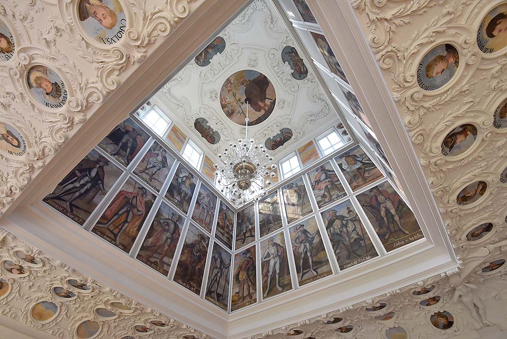 Mehr InformationenAus einer mittelalterlichen Burg mit Kaiserpfalz entwickelte sich, vom barocken Baustil geprägt, eine repräsentative weitläufige Schlossanlage, deren bauliche Vielfalt beeindruckt. Sehenswert sind die spätgotische Schlosskirche und die Festsäle mit ihrer einzigartigen Innenarchitektur und Ausstattung. In stilvollem Ambiente zeigen sich Kunsthandwerk, eine fürstlich geprägte Waffen- und Gemäldesammlung und ein barockes Porzellankabinett. Bedeutend sind ein Konvolut ostasiatischer Porzellane von Bernhard August von Lindenau aus dem Jahr 1845 sowie eine Sammlung historischer und zeitgenössischer Spielkarten. Besonders reizvoll ist die multimediale Kartenmacherwerkstatt, in der einerseits die traditionelle Art und Weise des Druckerhandwerks, andererseits in der Medienwerkstatt modernste Technik zur Herstellung von Kartenbögen präsentiert und für Jedermann angeboten wird.