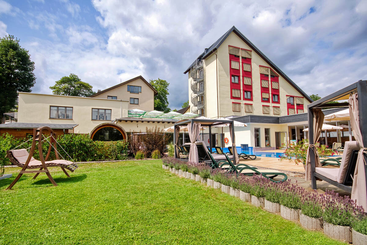 Mitten im Grünen über den Dächern der bekannten Luther- und Fachwerkstadt Schmalkalden, ca. 4 km vom Stadtkern entfernt, finden Sie unser 4-Sterne-Wellness- & Urlaubshotel.