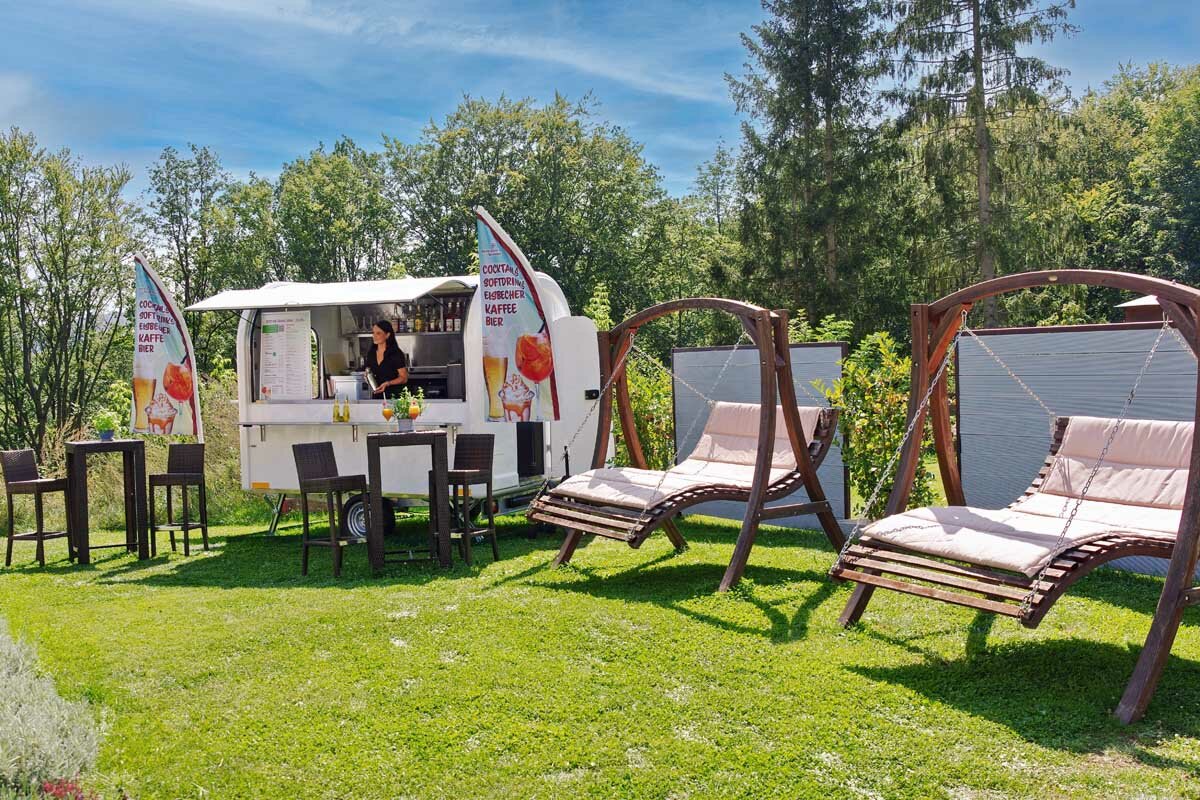 Um unseren Getränkeservice im Wellnessbereich zu erweitern, wird von April bis Oktober unser neuer Getränkewagen am Außenpool zwischen 14:30 – 17:00 Uhr für die Gäste geöffnet sein (witterungsabhängig). In den kühleren Monaten können Getränke weiterhin über das Telefon im Wellnessbereich geordert werden.