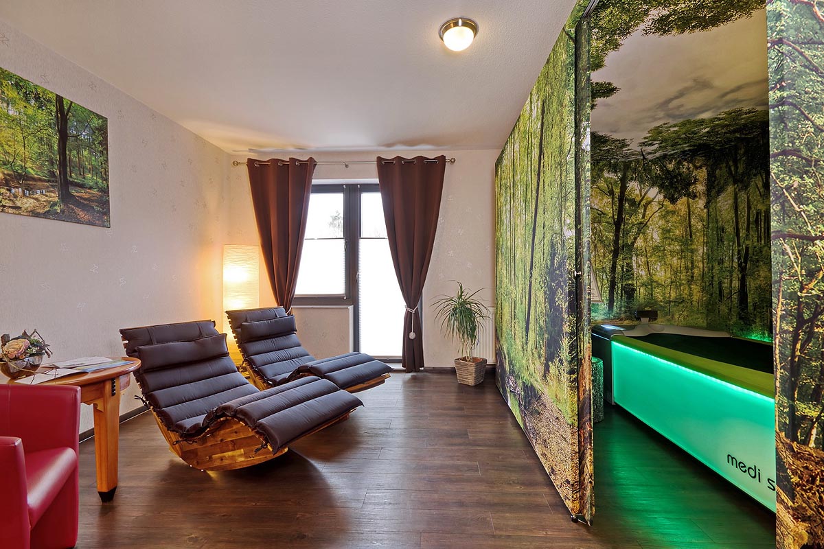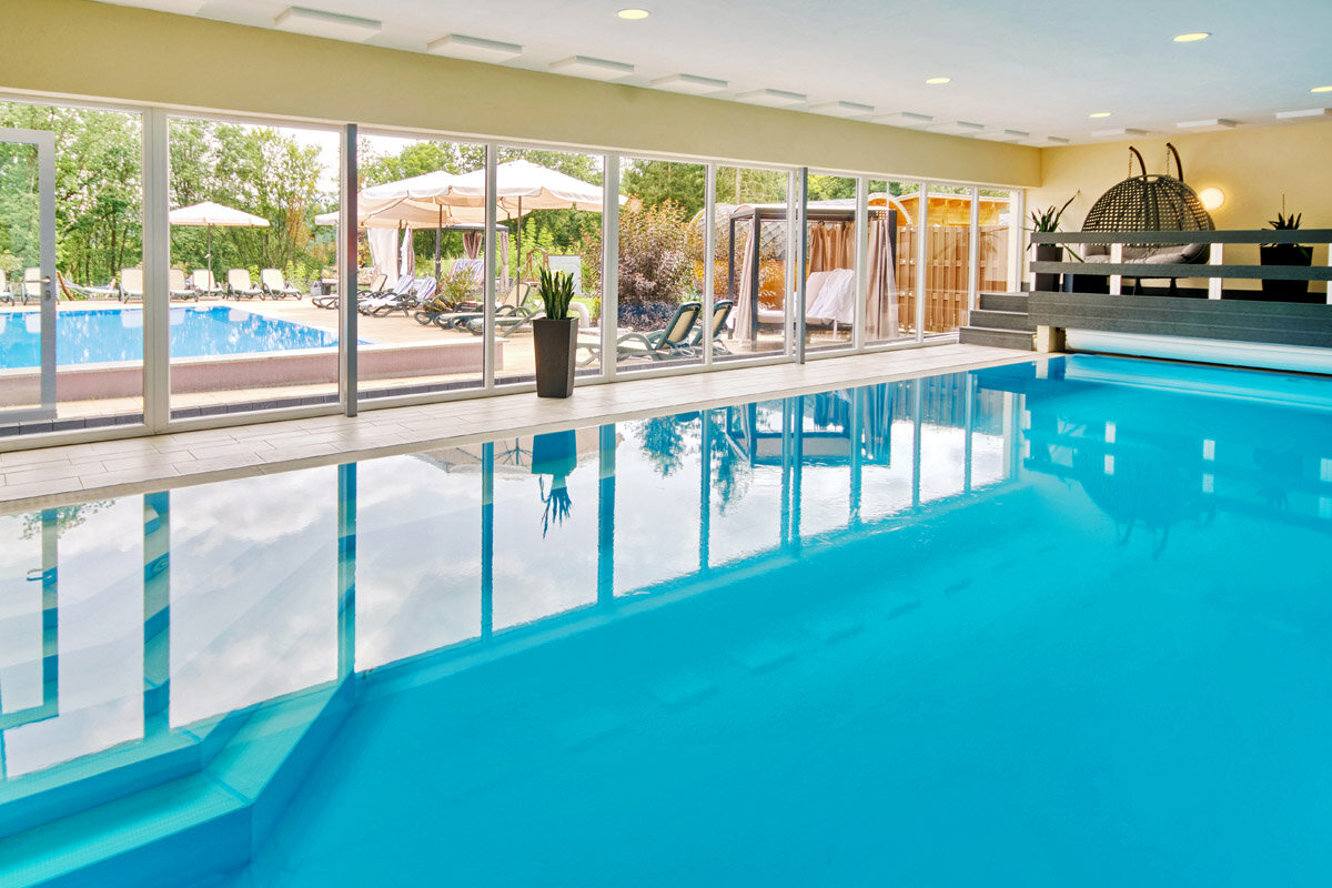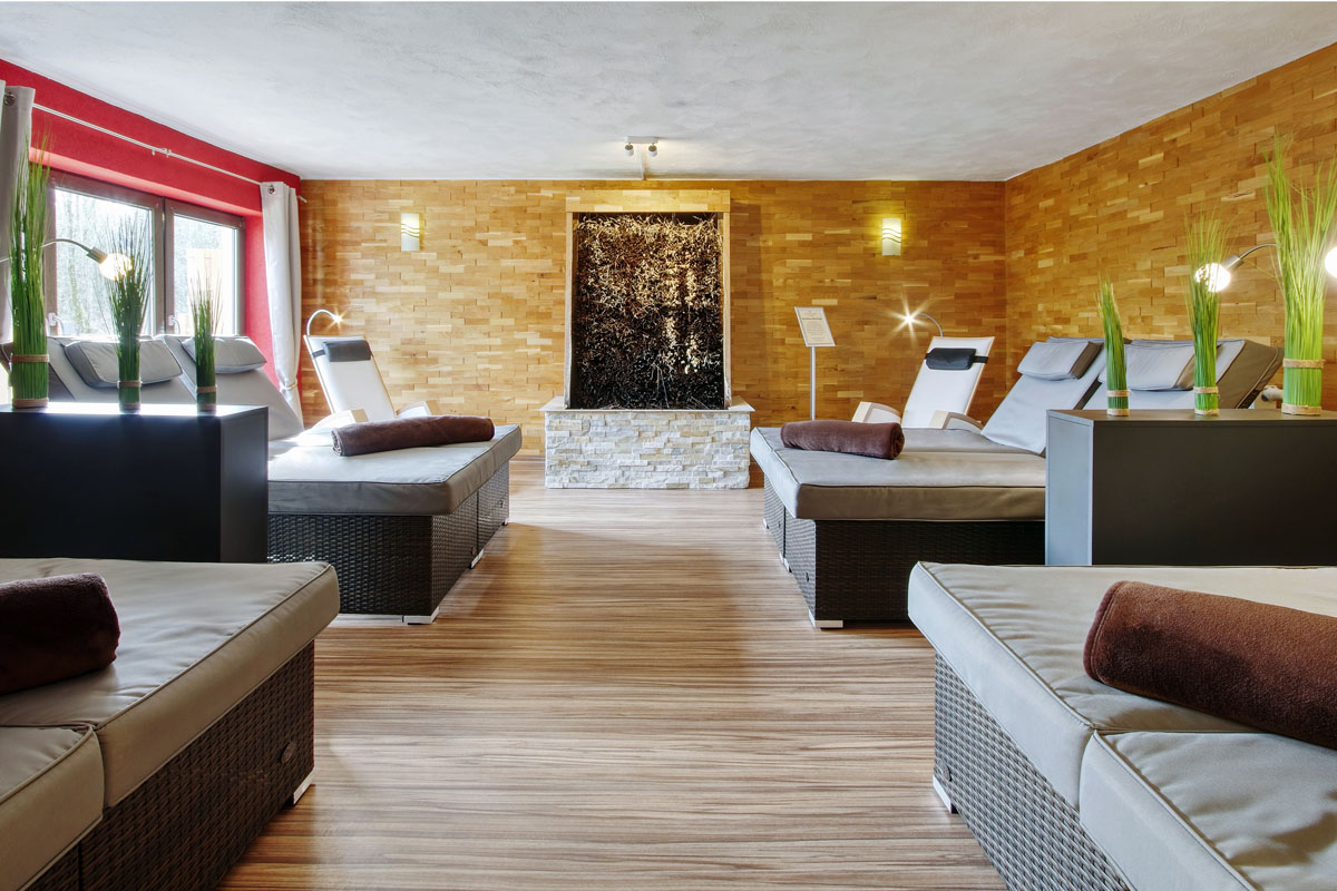 In unserem Wellnessbereich und Day Spa erleben Sie Erholung pur. Zum Angebot gehören ein beheizter Innenpool mit Massagesitzbank und Gegenstromanlage, ein ganzjährig beheizter Außenpool, drei verschiedene Saunen (ca. 65–95°C) im Innen- und Außenbereich, Infrarot-Tiefenwärmekabine, Dampfsauna mit Aromaölen (ca. 45°C), verschiedene Erlebnisduschen, Kneippschlauch, beheizte Sitzbank mit Fußbecken, Physiotherm Wärmeliegen, Gradierwerk im Sauna-Ruheraum zur Salzinhalation, Relax-Liegen am Pool und eine große Liegewiese..