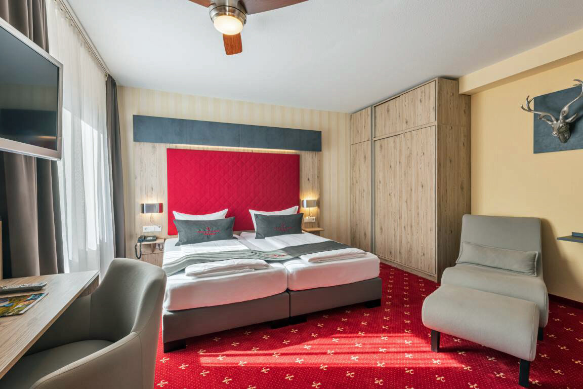 Für Ihre individuellen Wünsche bieten wir Ihnen 48 stilvoll eingerichtete Gästezimmer in verschiedenen Kategorien. Alle Zimmer sind mit einem modernen Bad, 32"-Flachbild-TV, Minibar, Telefon, Föhn, Kosmetikspiegel u.v.m. ausgestattet.