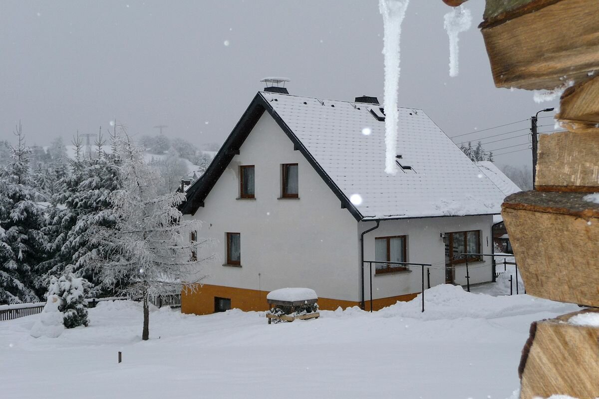 Wir bieten Ihnen ein alleinstehendes Ferienhaus mit Garage für 2 - 3 Personen und eine Ferienwohnung für 3 - 4 Personen bei uns im Haus, auf separater Etage am Ortsrand von Schmiedefeld, am Rennsteig in absolut ruhiger Lage. Von hier aus haben Sie im Sommer wie auch im Winter viele Möglichkeiten für Wanderungen und Spaziergänge (5 Minuten bis zum Wald). Zum Ortskern, mit vielen Einkaufsmöglichkeiten, haben Sie nur 5 Minuten Fußweg.