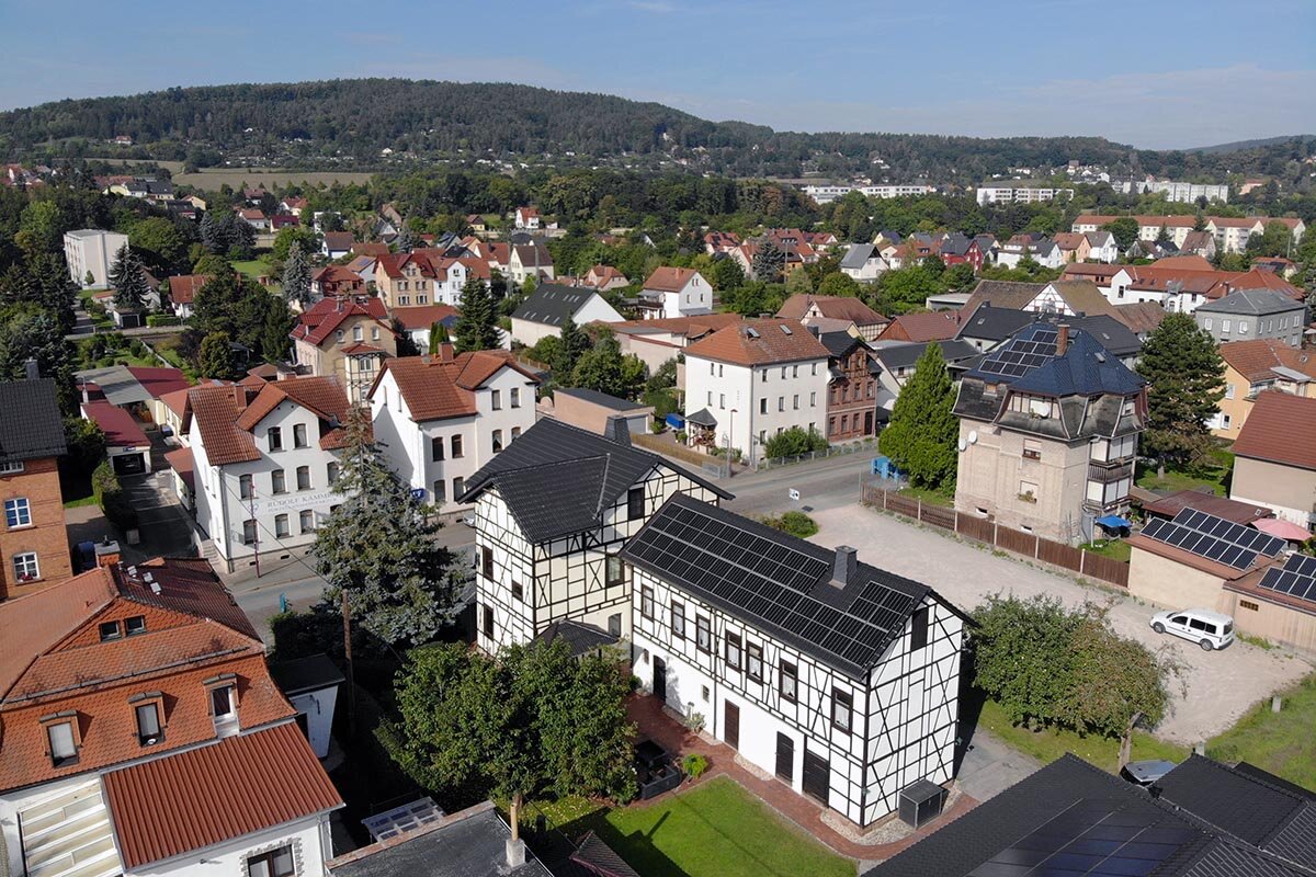 Das Ferienhaus befindet sich im Stadtteil Volkstedt, unweit vom Saaleufer, der Rudolstädter "Reviera" mit seiner Schiller-Gedenkstätte „Schillershöhe“. Alle Sehenswürdigkeiten der Stadt erreichen sie fußläufig. Das Erlebnisbad Saalemaxx ist nur wenige Minuten entfernt. Ca. 200 m vom Ferienhaus entfernt finden Sie die Bäckerei Wolf mit Cafe` sowie die Landfleischerei Kleingeschwenda. Das Gasthaus „Zum Anker“ mit Biergarten befindet sich wenige Meter von Ferienhaus entfernt und bietet traditionelle Thüringer Küche. Ein weiteres Restaurant in der Nähe ist die „Gondelstation“, direkt am Saaleufer.