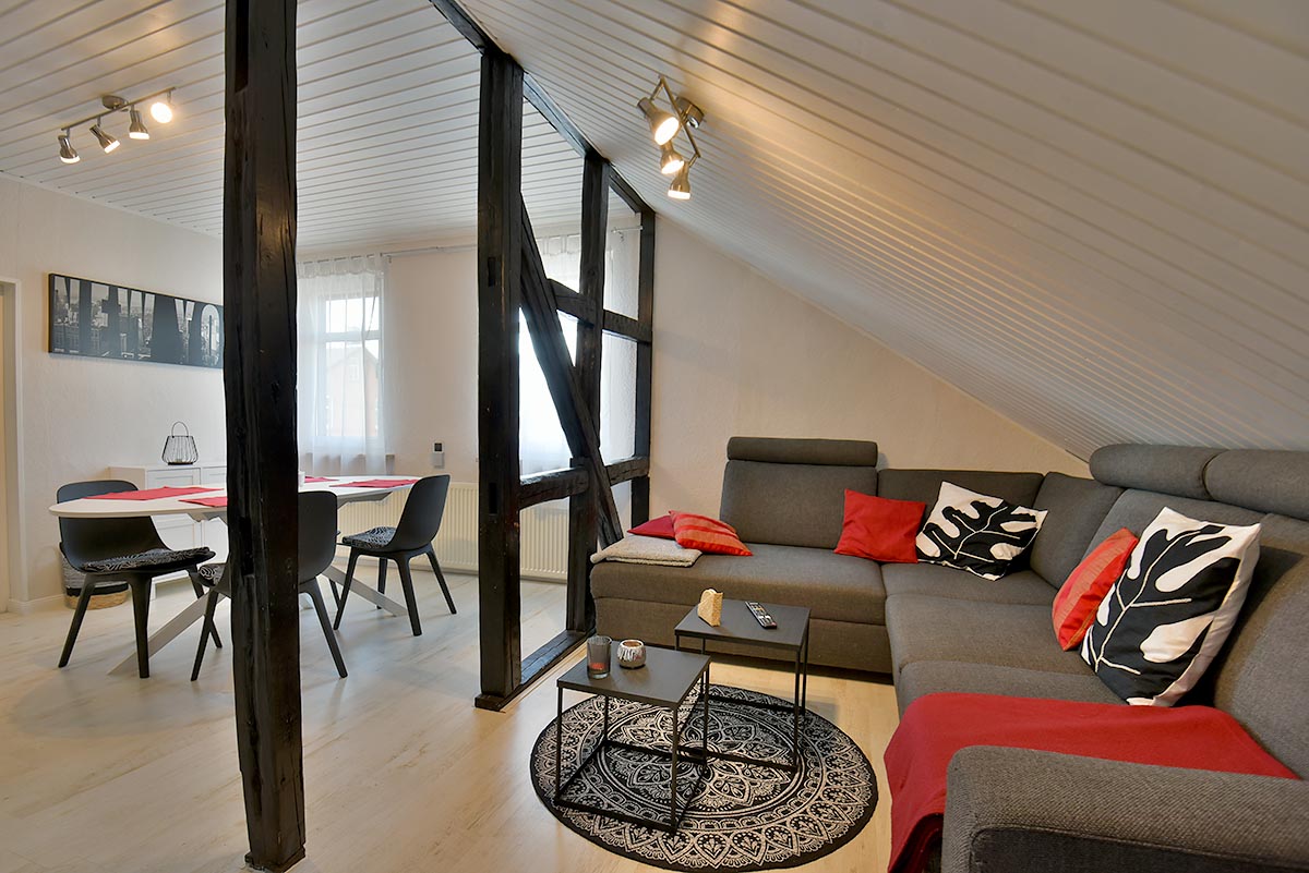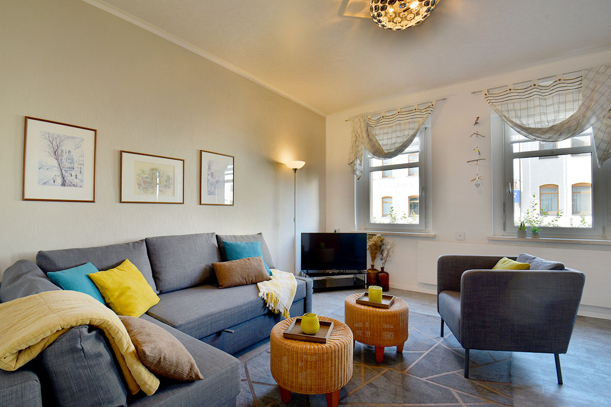 In ruhiger Lage von Rudolstadt befinden sich die Apartments am Saalebogen inkl. einem schönen Garten mit Gartenlounge und zusätzlich überdachter Sitzecke mit Grillmöglichkeit. Es stehen Parkplätze mit E-Ladesäule zur Verfügung. Die drei Wohnungen wurden im Sommer 2023/2024 neu renoviert und liebevoll eingerichtet. Sie bieten Ihnen einen idealen Ausgangspunkt für Ihre Erlebnisse in Rudolstadt bzw. in Thüringen. Nur im Apartment "Bärbel" ist ein Haustier (kleiner Hund Schulterhöhe max. 40 cm) auf Anfrage erlaubt. Für ein Haustier werden Zusatzgebühren pro Nacht erhoben.