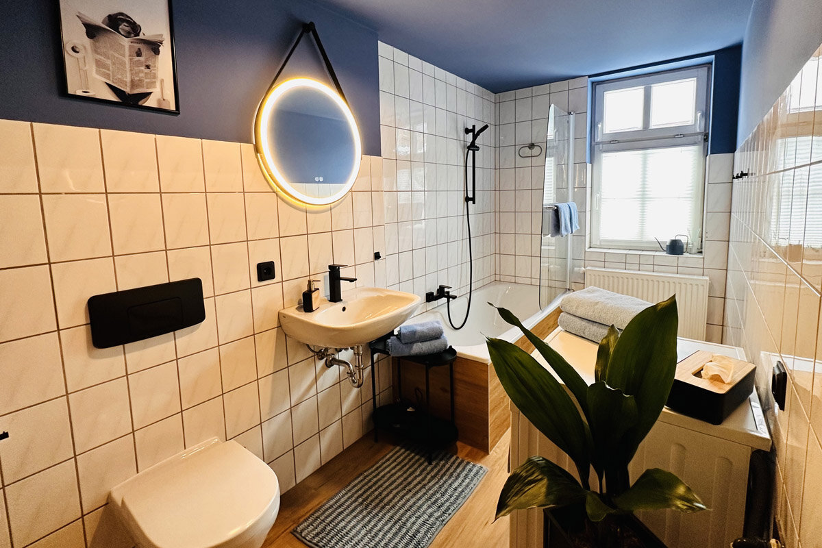 Im Erdgeschoss erwartet Sie auf ca. 45 qm eine stilvolle 2-Zimmer-Ferienwohnung für bis zu 4 Personen (max. 3 Erwachsene und 1 Kind).