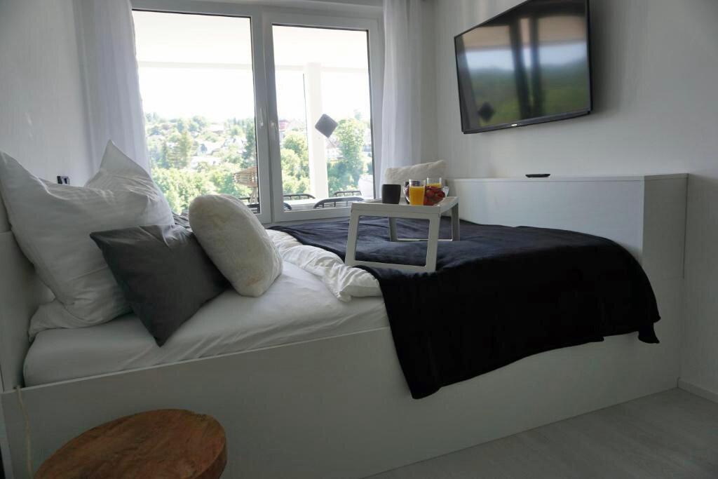120 m² im OG mit Balkon und Seelblick, für 6 Personen, 2 Einzelbetten, 1 Queensize-Bett, 1 Kingsize-Bett