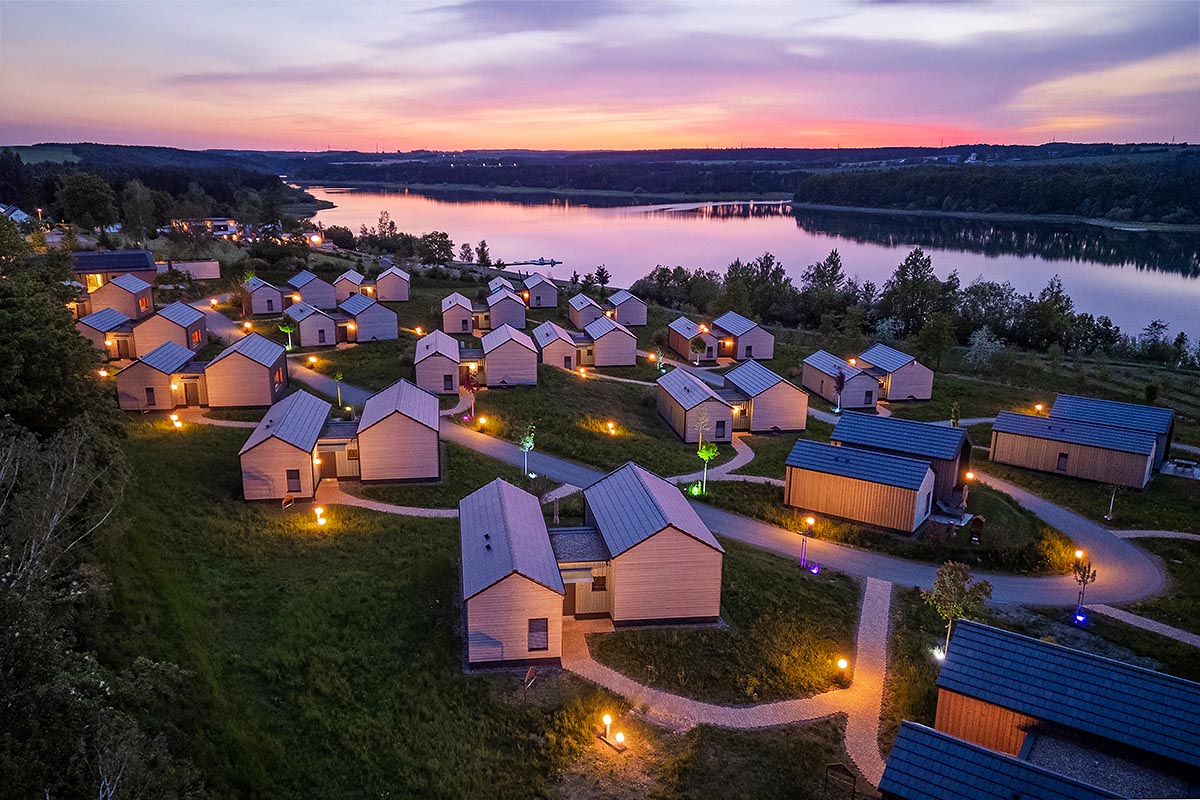 Mitten im Herzen des Thüringer Vogtlands, direkt am Ufer des Zeulenrodaer Meers, laden 21 stilvoll eingerichtete Chalets zum Entspannen ein. Die Unterkünfte bieten Platz für 2 bis 6 Personen und verfügen über eine offene Küche, komfortable Zirbenholzbetten, eine großzügige Terrasse mit Grill sowie einen herrlichen Seeblick. Einige Chalets sind barrierefrei gestaltet und zusätzlich mit einem Infrarotsitz im Bad ausgestattet. Auch Hunde sind hier herzlich willkommen.
