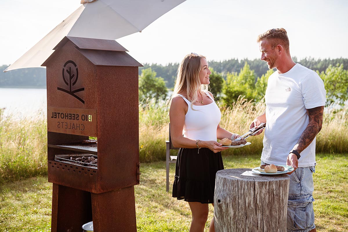 Für kulinarische Genüsse stehen Ihnen zahlreiche zubuchbare Optionen zur Verfügung: Ein gefüllter Kühlschrank, ein Brötchenservice oder Grill-Pakete aus der hauseigenen Fleischerei des Bio-Seehotels.