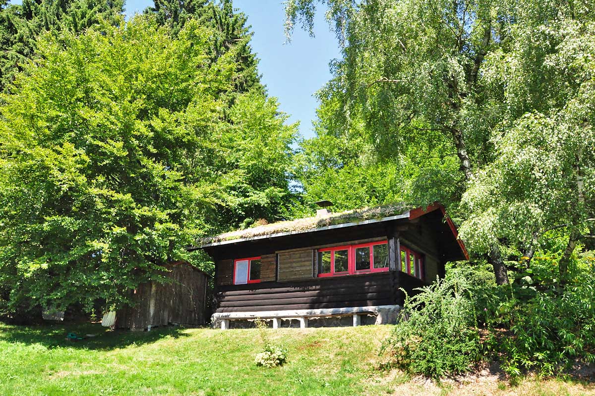 Die rustikale Blockhütte befindet sich mitten im Thüringer Wald auf 720 m Höhe an einem schönen Südhang mit hervorragender Fernsicht.