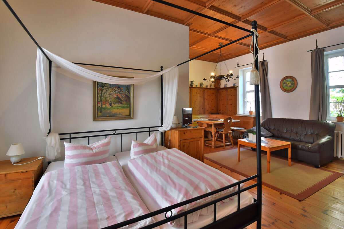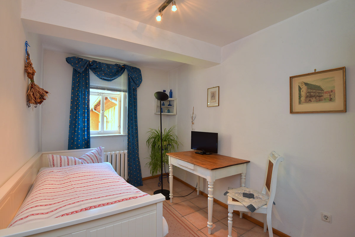 Die Ferienwohnungen, Einzelzimmer und Doppelzimmer überraschen mit individuellem Flair: gemütlichem Kachelofen, altem Fachwerk, dicken Mauern und ländlich-rustikaler, antiker Möblierung. Außerdem verfügen unsere Gästezimmer über Sat-TV, Dusche/WC sowie WLAN.