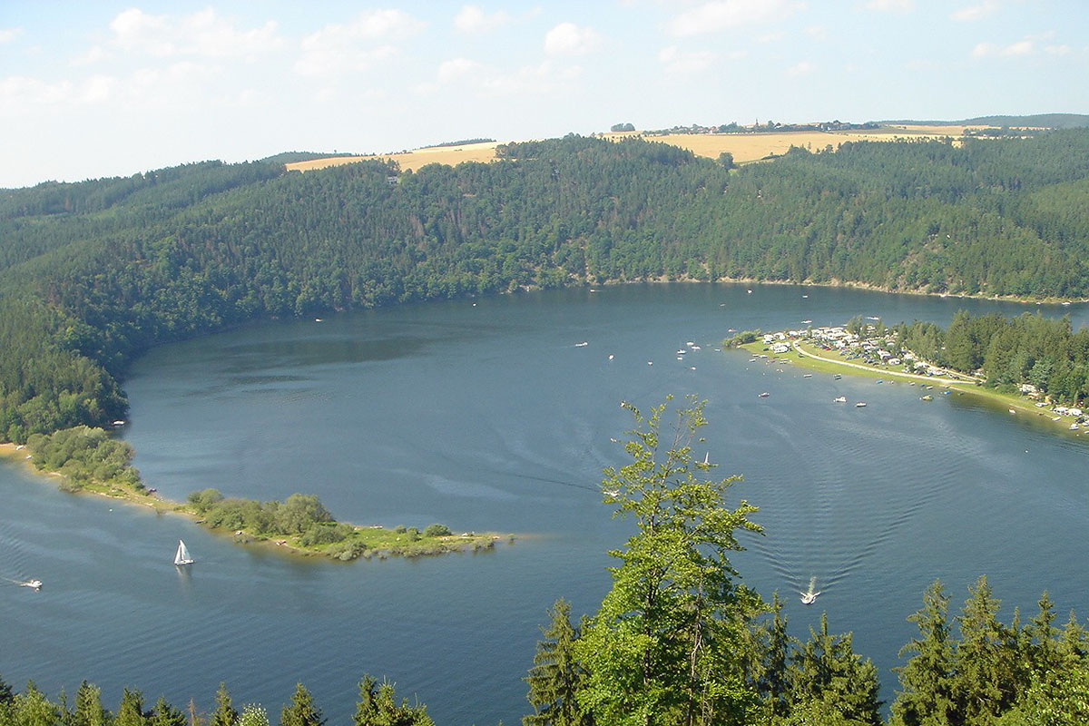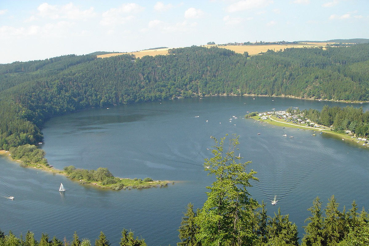 An einem der größten Stauseen Deutschlands, inmitten des grünen Thüringens, liegt unser Naturcampingplatz auf einer malerischen Halbinsel, die weit in eine große Seebucht des Hohenwartestausees hineinragt.