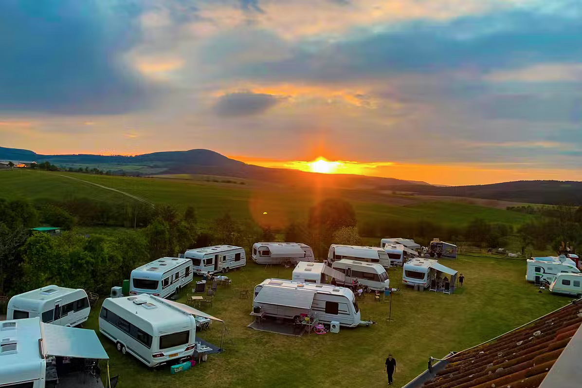 Urlaub unter freiem Himmel, umgeben von der idyllischen Landschaft der Rhön in Thüringen: Unser Campingplatz verspricht Outdoor-Spaß pur. Die Grünfläche direkt hinter dem Familienhotel Rhön Feeling im ruhigen Örtchen Bernshausen bietet Platz für Wohnmobile und Wohnwagen oder Zeltplätze.