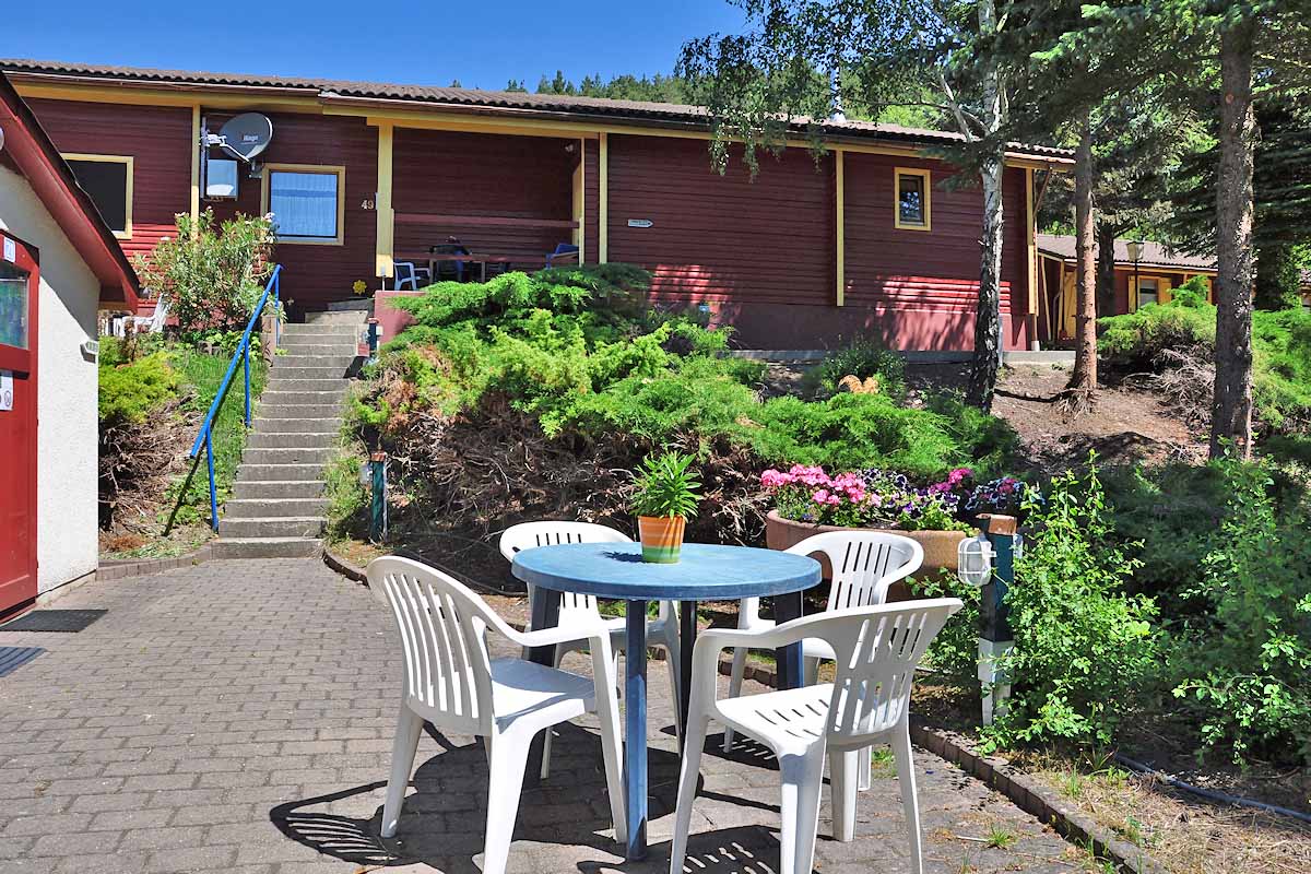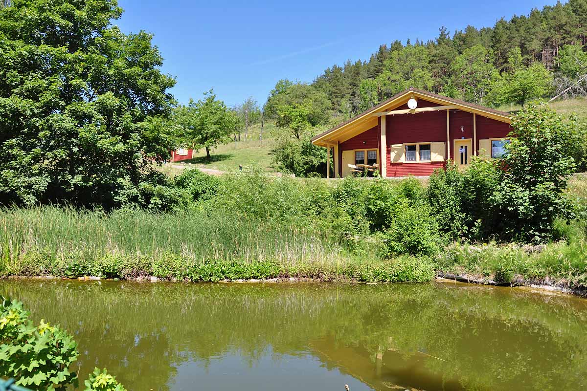 Unsere Ferienanlage liegt oberhalb des Luftkurortes Plaue zwischen 430 und 450 Meter Höhe an einem sonnigen, bewaldeten Südhang, an dem früher Wein angebaut wurde. Es besteht aus freistehenden, einstöckigen Häusern und bedeckt eine Gesamtfläche von 33.000 qm.