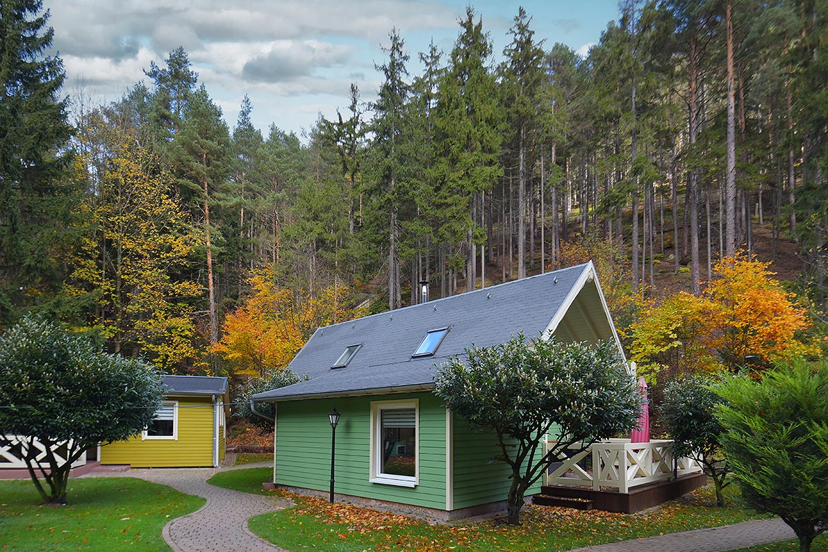 Sieben renovierte Ferienhäuser mit Küche, Bad und technischem Komfort bieten mitten im Wald für 2 bis 12 Personen eine ruhige Unterkunft. Einen Überblick über die Ausstattung der einzelnen Häuser sowie dazugehörige Grundrisse finden Sie hier.