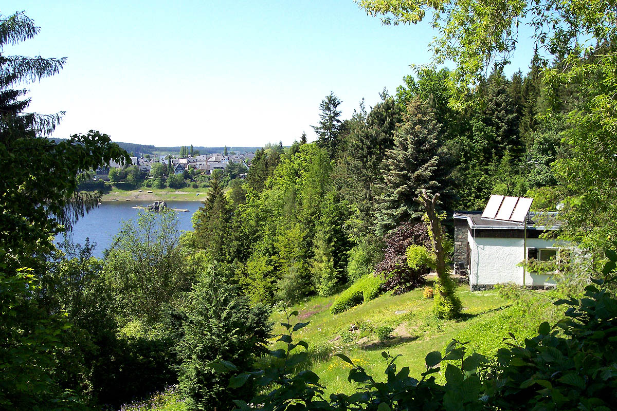 Unser Ferienhaus finden Sie in idyllisch ruhiger Hanglage Saalburgs. Von der Terrasse aus haben Sie einen herrlichen Blick über den Bleilochstaussee. Der hauseigene Bootssteg mit Ruderboot kann genutzt werden.