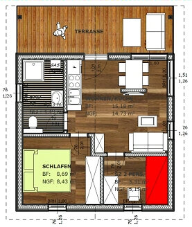 Ideal sind unsere Ferienhäuser für je 4 Personen. Aber bei Familientreffen oder ähnlichem besteht die Möglichkeit, jeweils noch 2 weitere Gäste als Aufbettung im Wohnraum auf dem vorhandenen Schlafsofa unterzubringen.