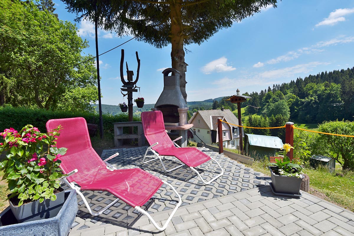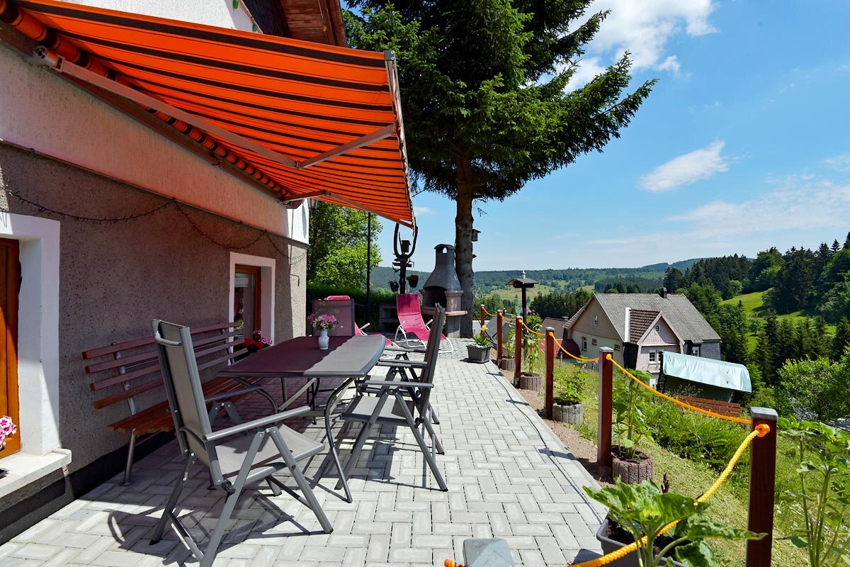Unser gemütlich eingerichtetes Ferienhaus mit Panoramablick liegt am Waldrand und hat einen direkten Zugang zum Wanderwege- und Loipennetz des Rennsteiggebietes.