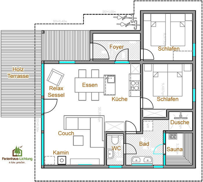 für 4 Personen + Sauna: ab 218,- EUR pro Nacht / ab 1.583,- EUR pro Woche