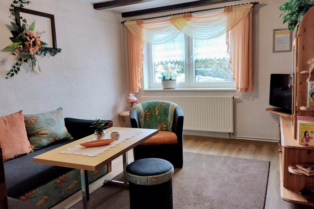 Das gemütlich eingerichtete 4-Sterne Ferienhaus Oelze befindet sich im Trusetaler Ortsteil Laudenbach in ruhiger Lage in Waldnähe und 400 m entfernt vom Trusetaler Wasserfall.