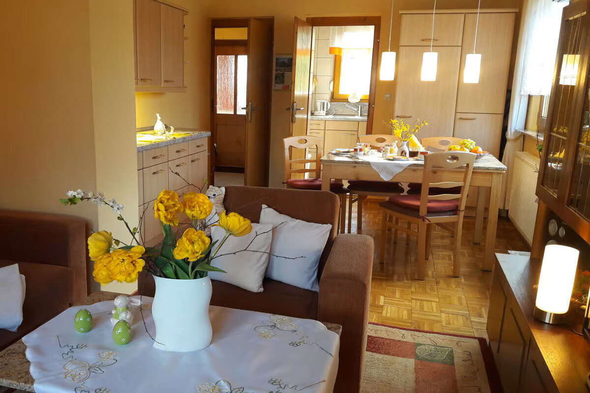 In unserem Nichtraucher-Ferienhaus soll es Ihnen an nichts fehlen. Genießen Sie den Blick vom Essplatz des Wohnzimmers in den Garten, relaxen Sie in der bequemen Sitzecke. Auch für einen längeren Aufenthalt ist unser Ferienhaus gut geeignet.