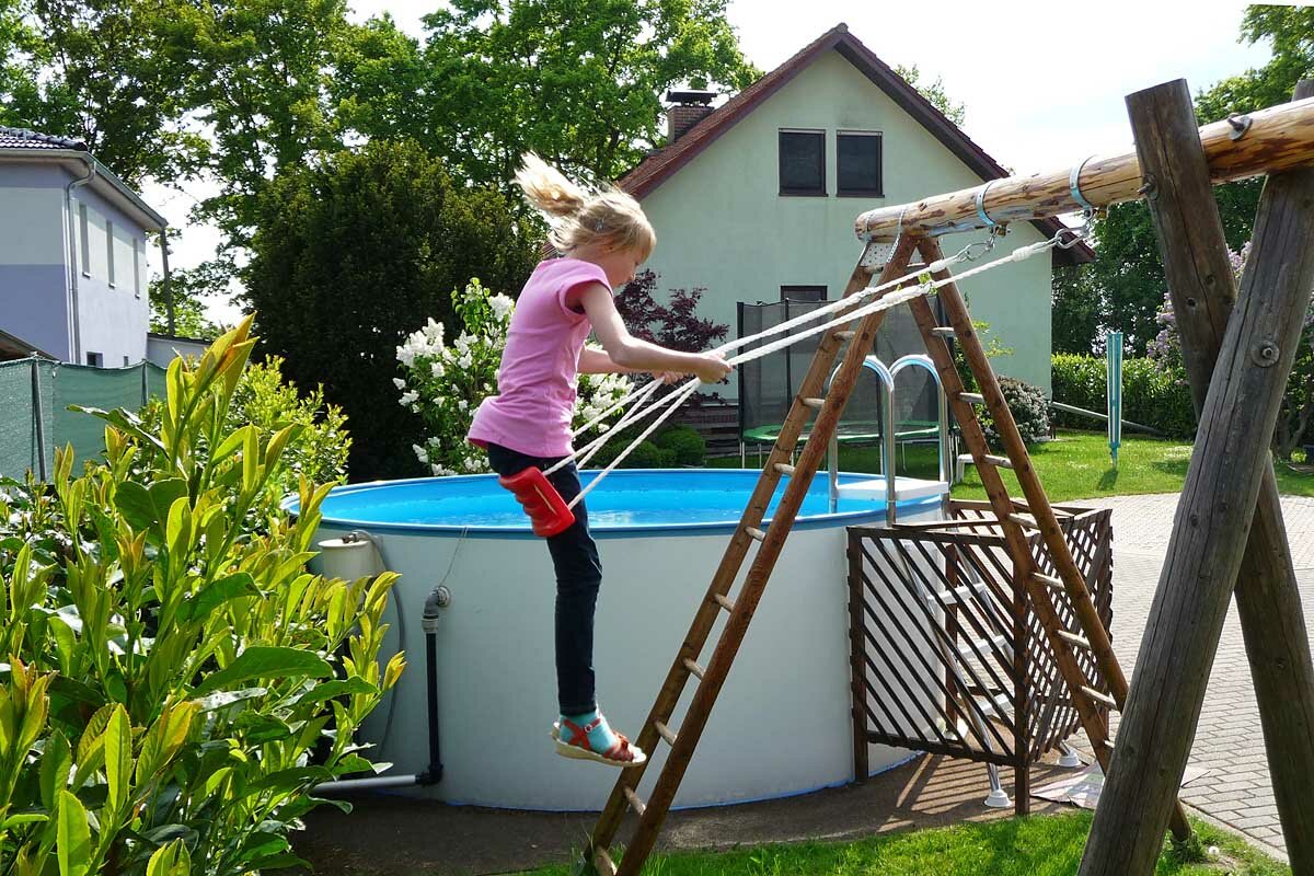 Ein großer Aussenbereich des Grundstückes dient ebenfalls zu Ihrer Erholung. Neben einer Sitzmöglichkeit mit Gartenmöbeln, einem kleinen Baumhaus und Sandkasten für Ihre Kinder und einem Swimmingpool können Sie dort auch Grillen. Nur wenige Schritte hinter dem Grundstück beginnt bereits die wunderschöne Natur rund um Bollberg. Sie lädt ein zu gemütlichen Spaziergängen oder Wanderungen.