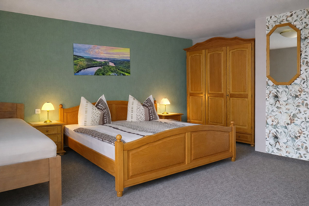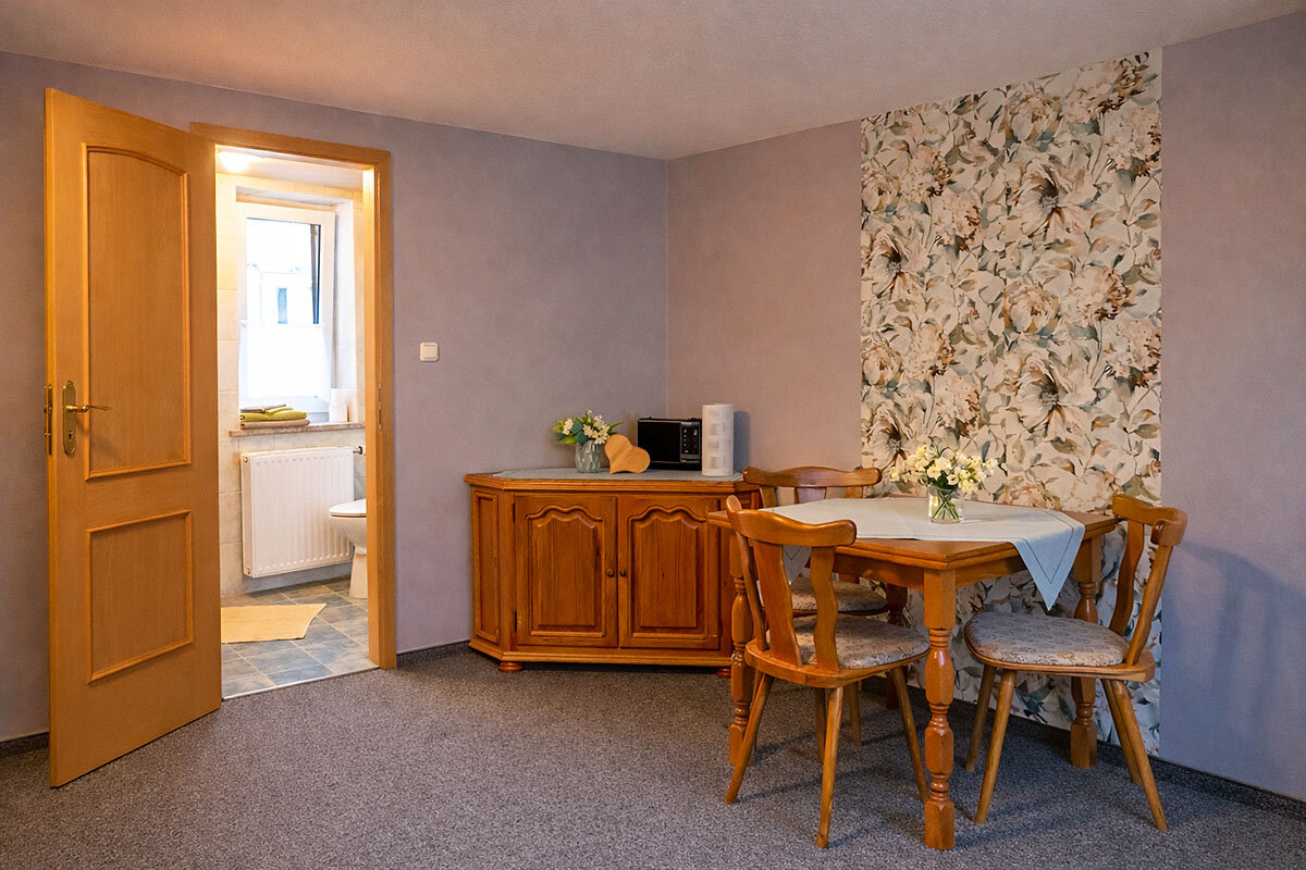 Die Ferienwohnung wurde für unsere Gäste liebevoll eingerichtet. Sie ist mit 2 Doppelzimmern und einem 3-Bett-Zimmer ausgestattet und bietet Platz für bis zu 7 Personen.