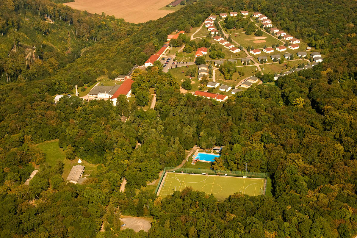Unser Ferienpark liegt im "Grünen Herzen Thüringens", auf dem Höhenzug der Hainleite, umgeben von alten Buchenwäldern in einem naturbelassenem Areal von 19 ha.