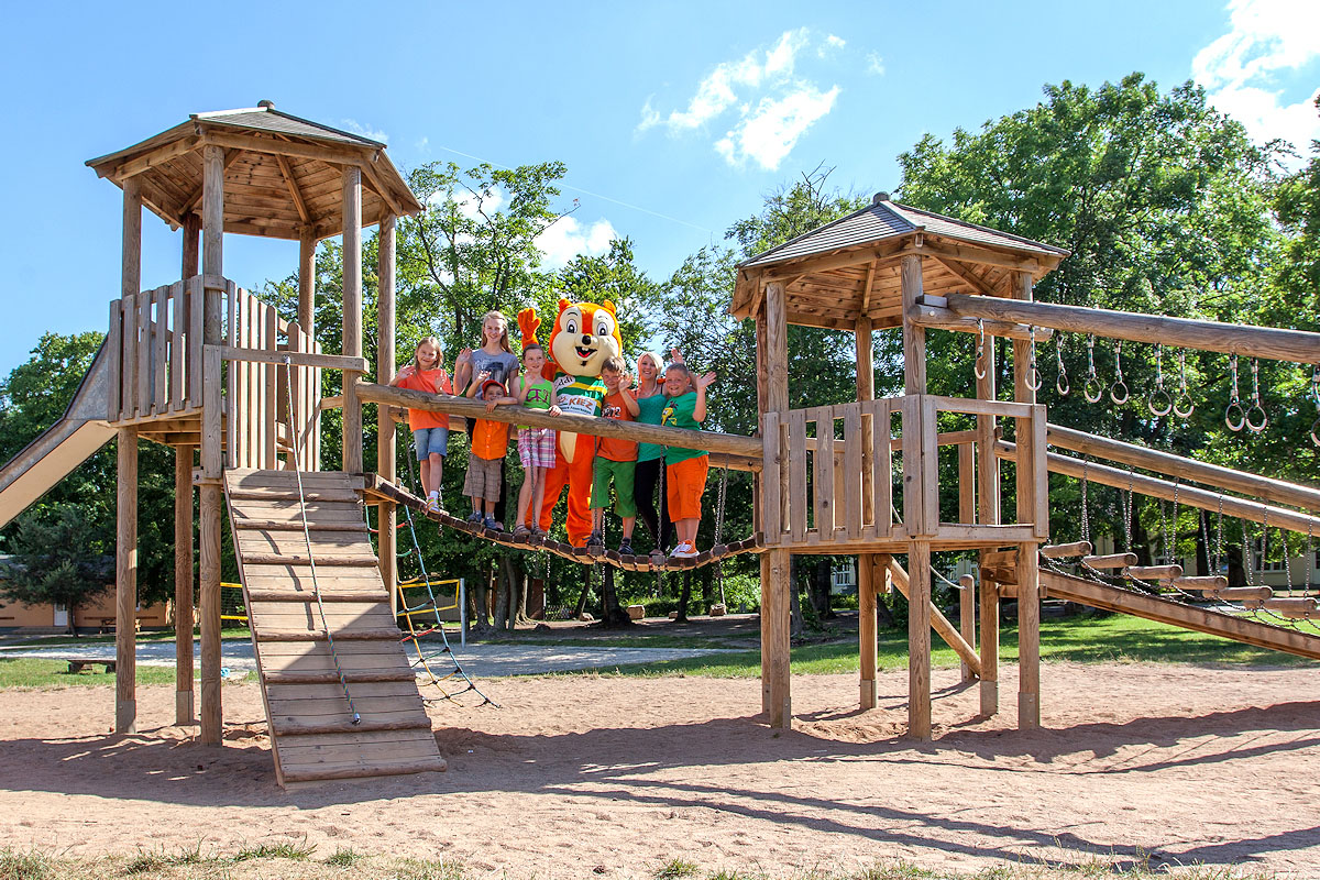 Ein von Wald umgebenes Freibad (15 x 25 m), mit Rutsche und ausgezeichneter Wasserqualität; Kunstrasensportplatz (90 x 45 m), mit Flutlichtanlage und 6 m hohem Ballfangnetz; Bowlingcenter mit 2 Bahnen; Billiardzimmer; Minigolfanlage; 2 Volleyballfelder; Tischtennishalle. Das Highlight des Ferienparks ist seit 2011 der 21m hohe Kletterturm mit atemberaubender Aussicht auf das Gelände und die Umgebung.