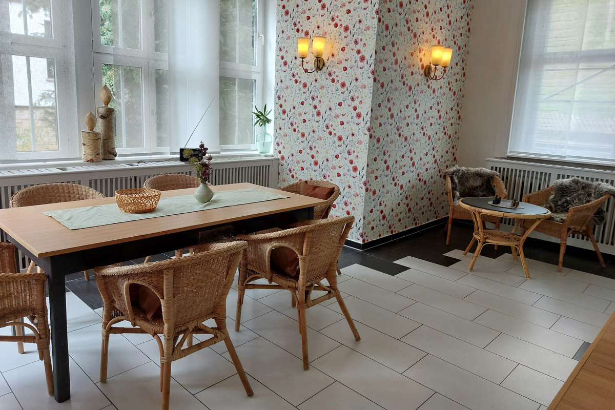 Die ehemalige Kirche wurde im Jahre 2007 vom Bistum Erfurt in liebevolle Hände abgegeben und seit dem von Familie Göckel, in Eigenarbeit saniert und renoviert. Die geschmackvolle Einrichtung ist schlicht und natürlich, um an die Vergangenheit des Hauses anzuknüpfen.