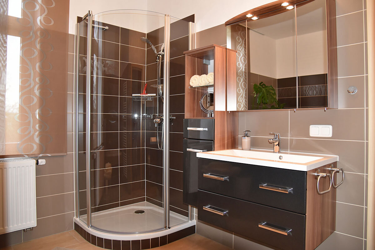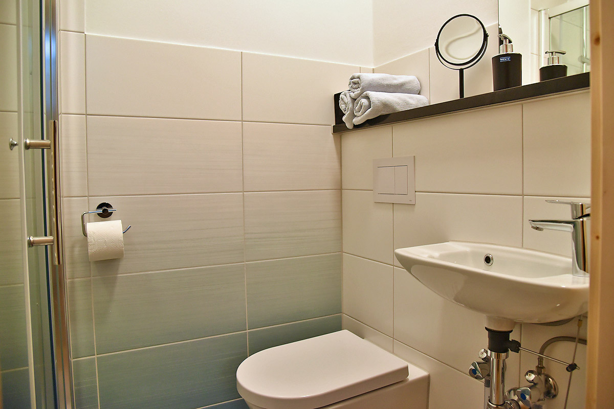 Zwei Zimmer verfügen über Doppelbetten, zwei weitere Zimmer sind mit je zwei Einzelbetten ausgestattet. In allen Zimmern sind TV- und Radiogeräte sowie kostenfreies WLAN vorhanden. Die beiden Bäder lassen keine Wünsche offen.