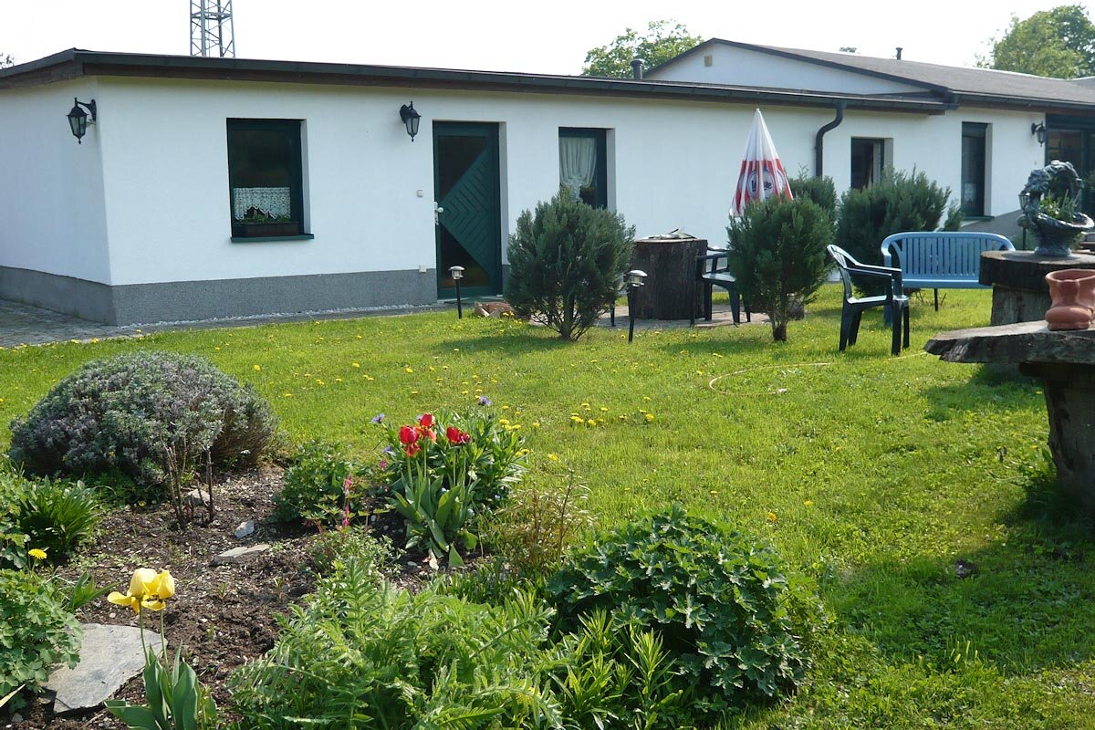 Die ebenerdige, neu eingerichtete Ferienwohnung befindet sich auf dem weitläufigen sonnigen Grundstück Ihrer Vermieter und verfügt über einen separaten Eingang, PKW-Stellplatz und einen Gartenanteil mit Grill und Gartenmöbeln, der nur Ihnen zur Verfügung steht. Dort können Sie gern auch ein kleines Zelt aufbauen.
