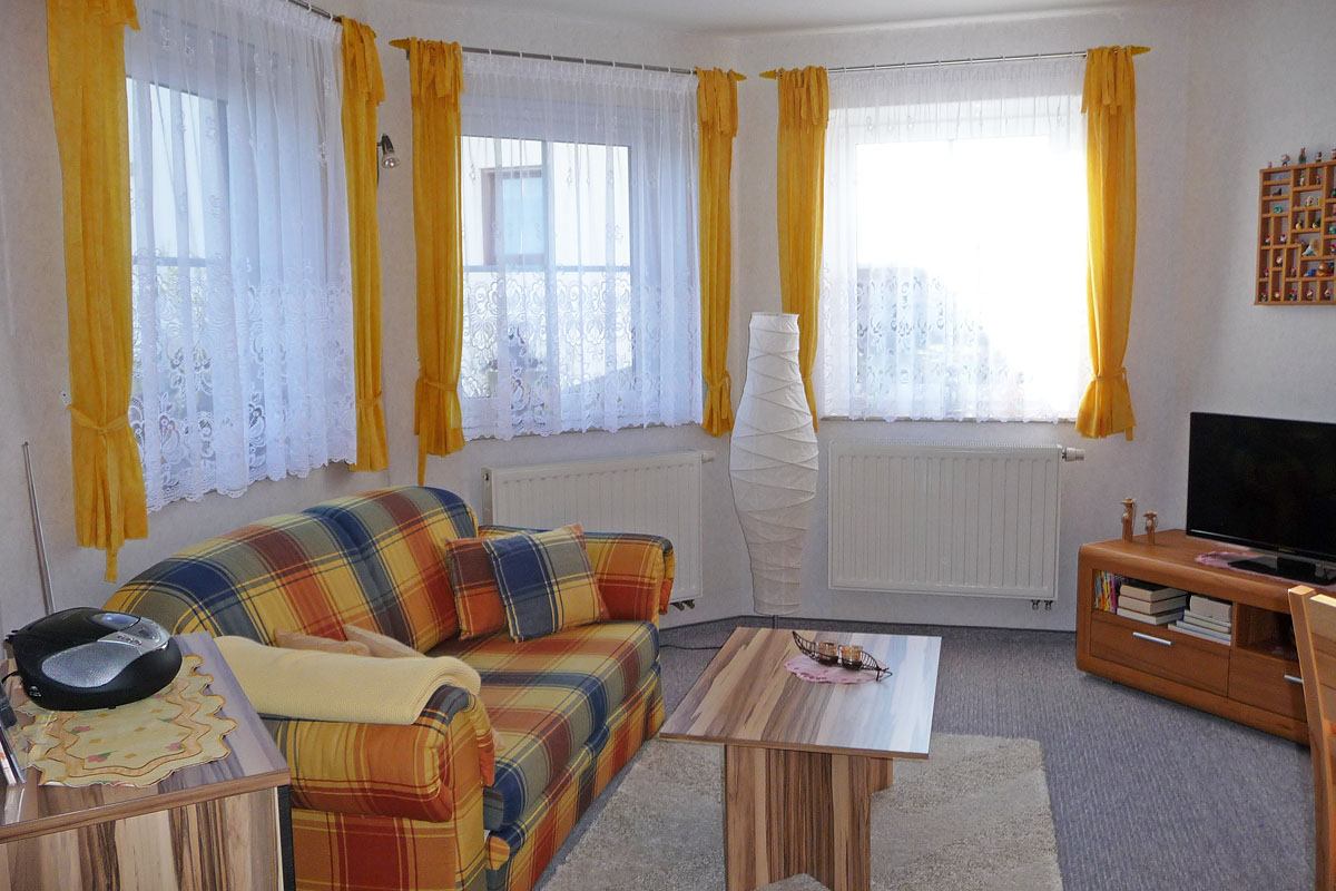 Ihre sehr gepflegte Nichtraucher-Ferienwohnung befindet sich am Ortsrand, in einer sehr ruhigen Siedlung, im Erdgeschoß des Hauses Ihrer Vermieter. Sie ist optimal für 2 Personen (1 Aufbettung für Kinder ist im Wohnbereich nach Absprache möglich).