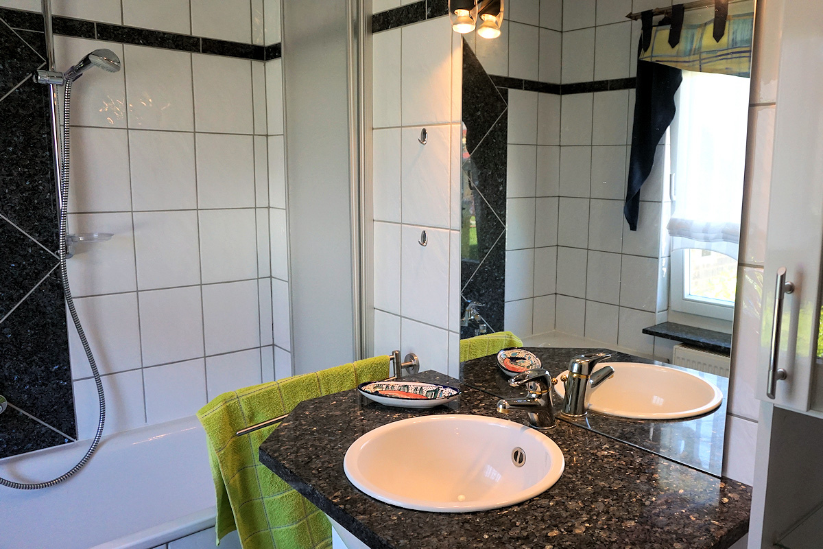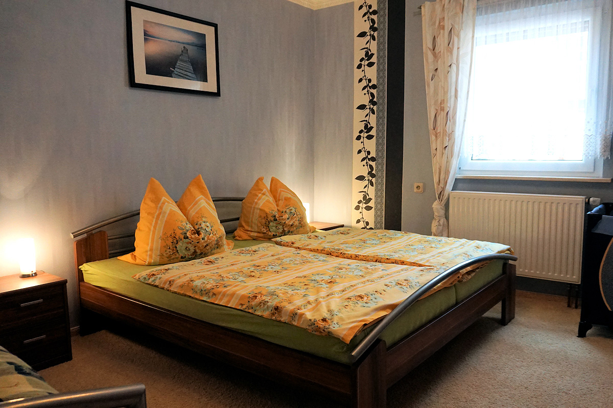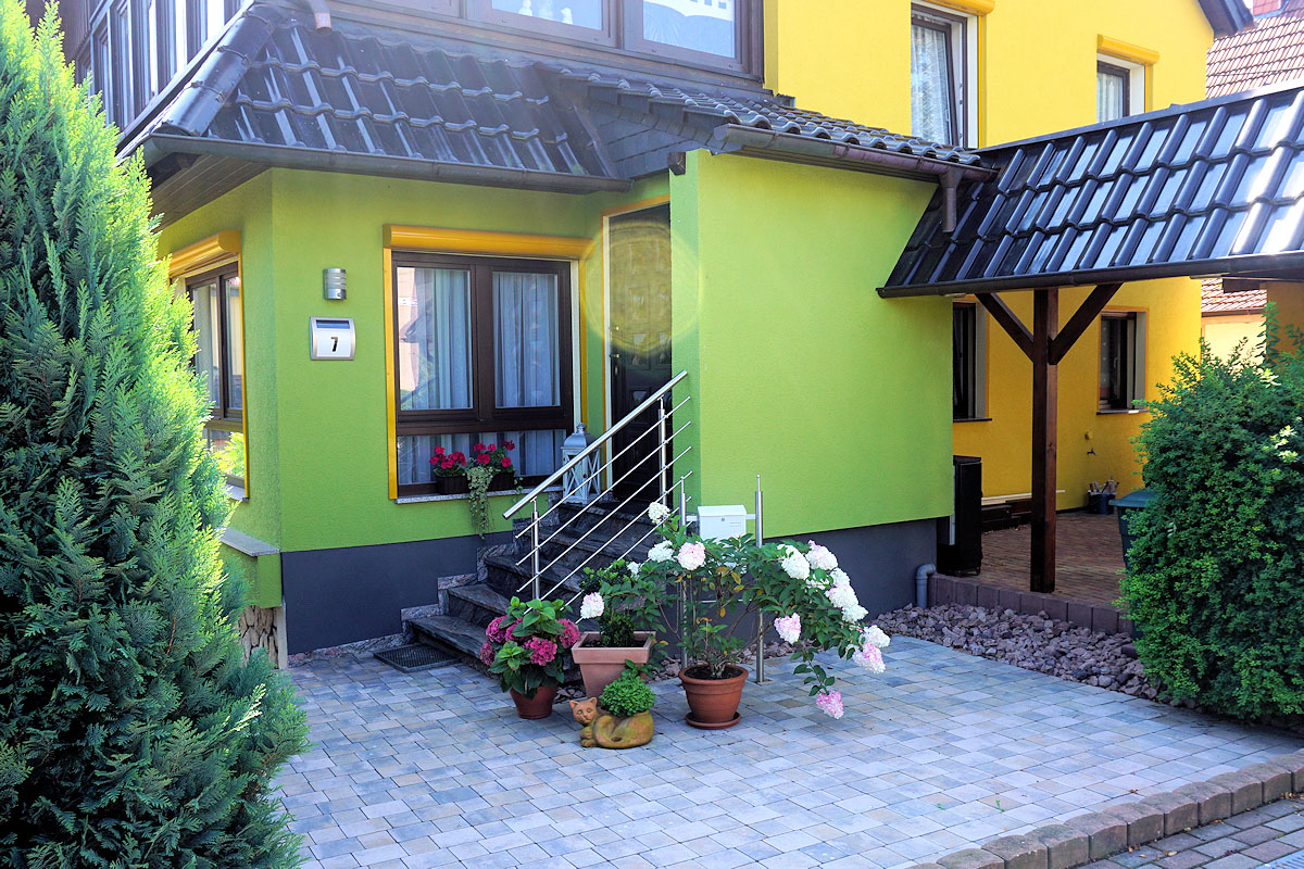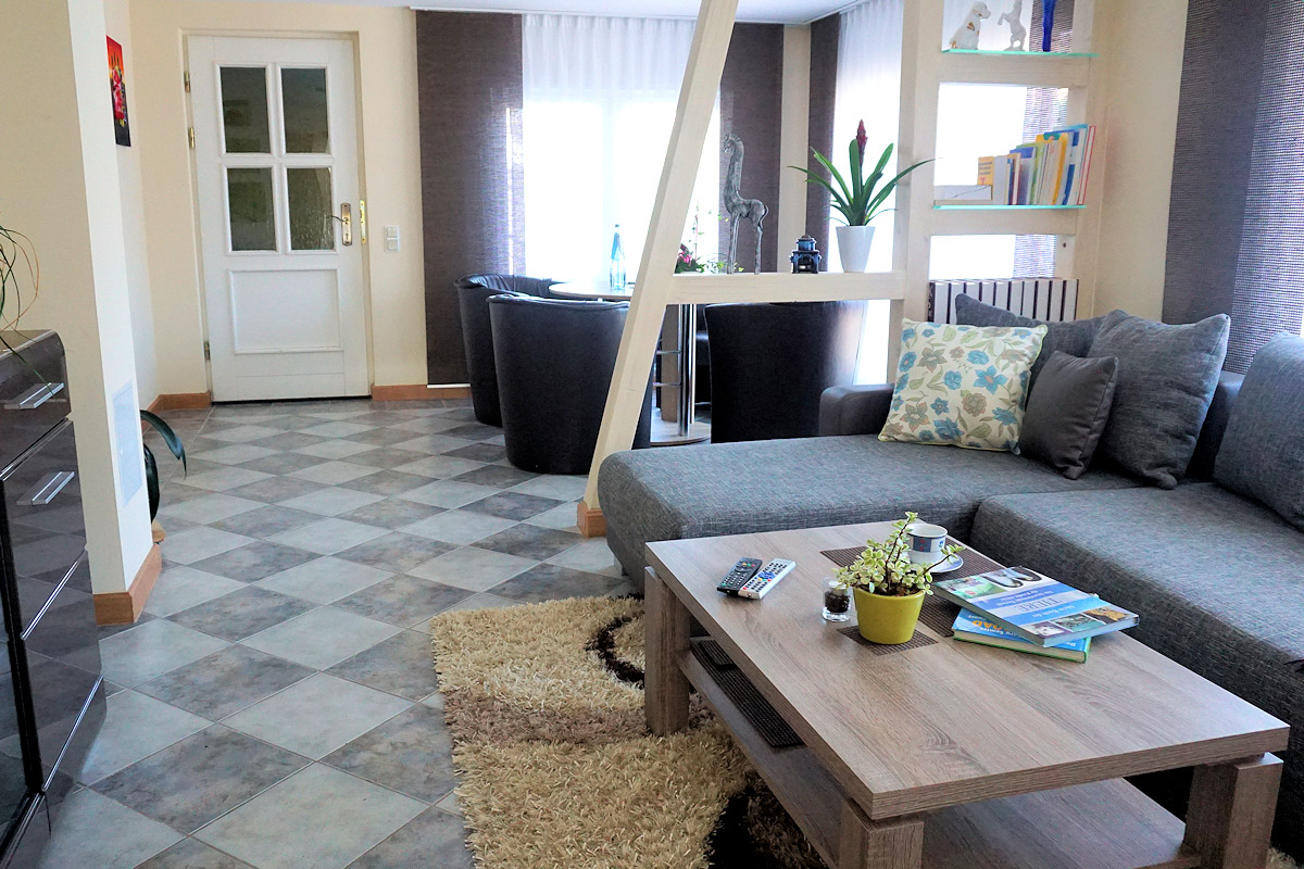 Unsere Nichtraucher-Ferienwohnung (49 qm, separater Eingang) für 2 bis 3 Personen befindet sich im Erdgeschoss unseres Zweifamilienhauses.