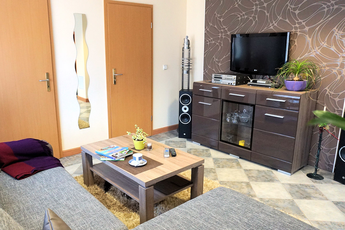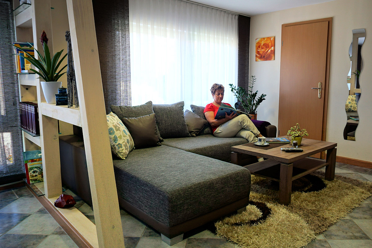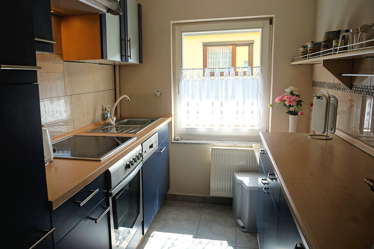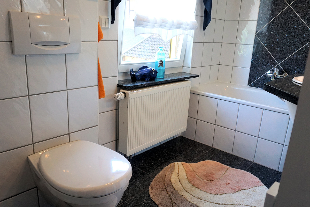 Unsere Nichtraucher-Ferienwohnung (49 qm, separater Eingang) für 2 bis 3 Personen befindet sich im Erdgeschoss unseres Zweifamilienhauses.