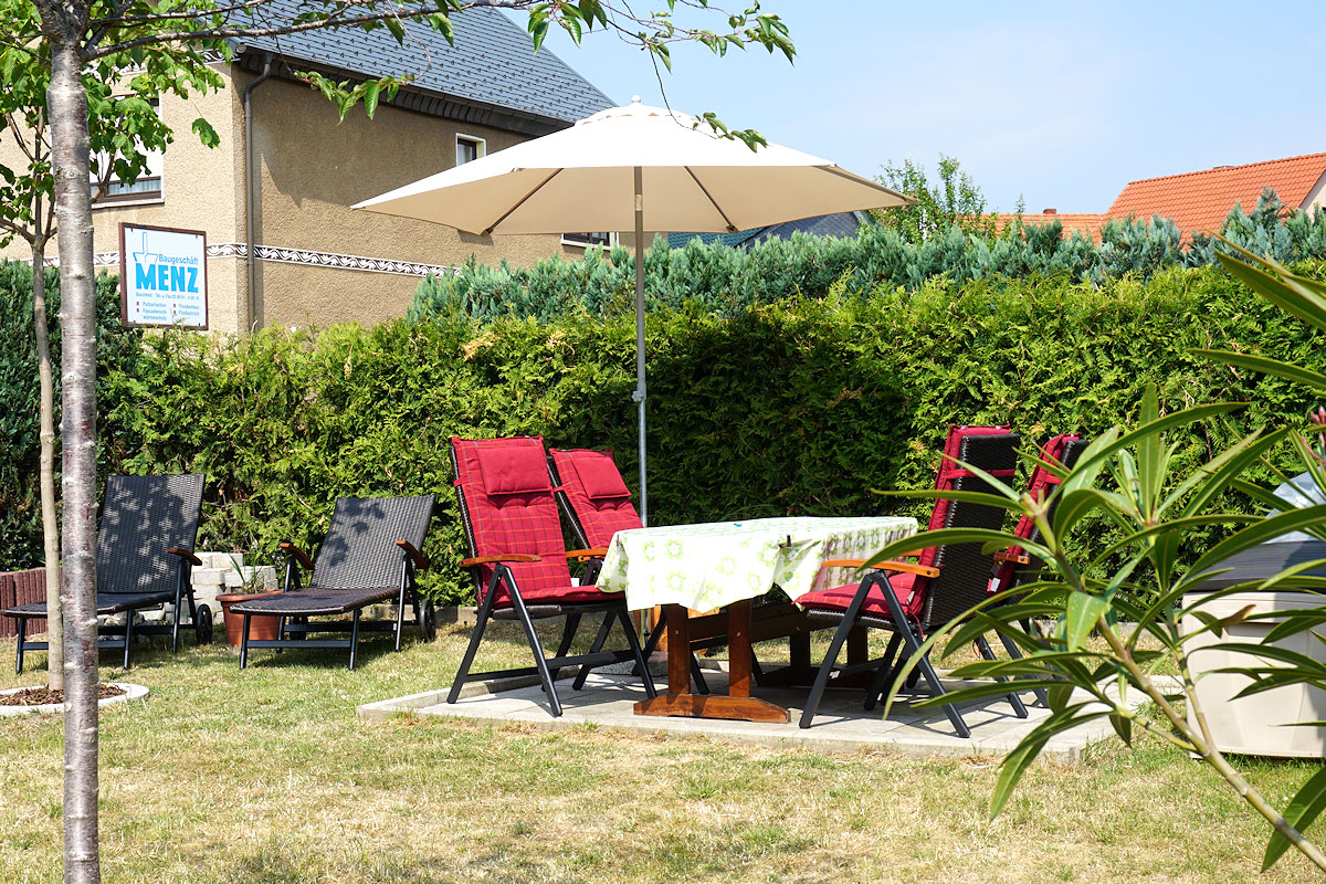In unserem Garten mit Sitzecke und Grillmöglichkeit können Sie einen erlebnisreichen Urlaubstag entspannt ausklingen lassen. Parkmöglichkeiten befinden sich direkt am Haus. In der Nähe finden Sie Einkaufsmöglichkeiten, eine Bäckerei, eine Eisdiele und gastronomische Einrichtungen. Ein Erholungsgebiet mit Badesee befindet sich im Ortsteil Immelborn.