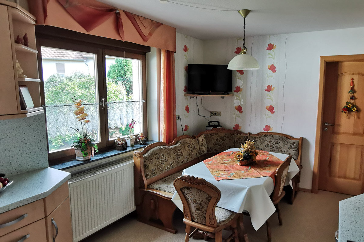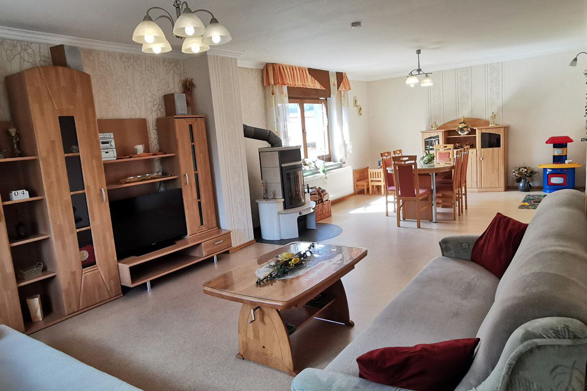 Unsere komfortabel ausgestattete Nichtraucher-Ferienwohnung für bis zu 6 Personen (Aufbettung möglich), befindet sich in ruhiger Ortslage von Borsch (Ortsrand, kein Verkehr), nahe dem Rhönstädtchen Geisa. Borsch liegt direkt am Ulstertal-Radweg.