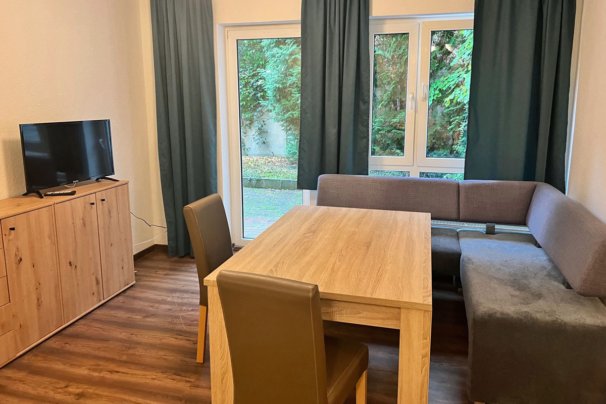 Unsere im Jahr 2022 fertiggestellte Ferienwohnung befindet sich im Souterrain mit Zugang zum Garten und Außensitzbereich und eignet sich für Pärchen, Monteure, Azubis, Geschäftsreisende oder kleine Familien.