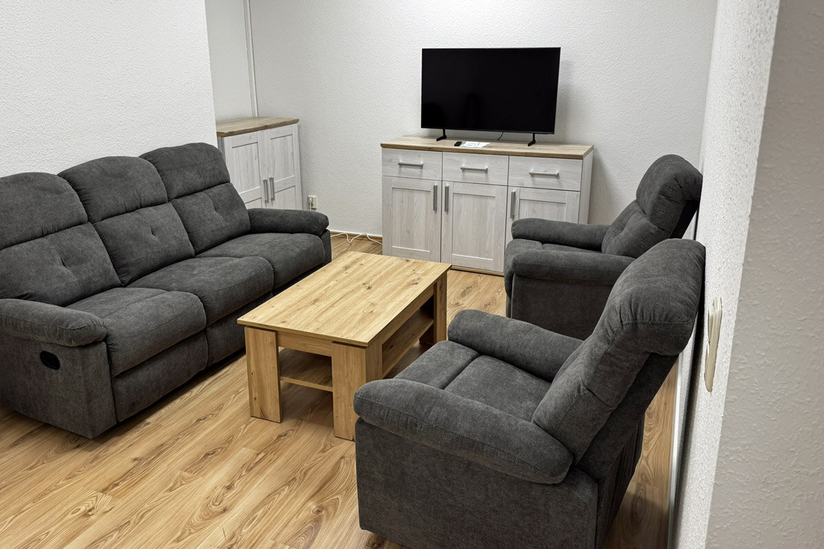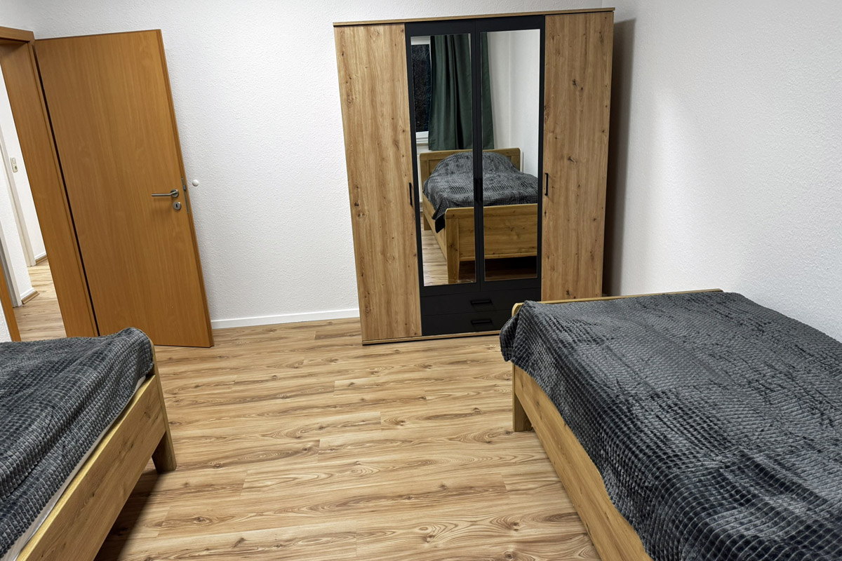 Unsere im Dezember 2024 fertiggestellte Ferienwohnung befindet sich im im Erdgeschoss und eignet sich für Pärchen, Monteure, Azubis, Geschäftsreisende oder kleine Familien.