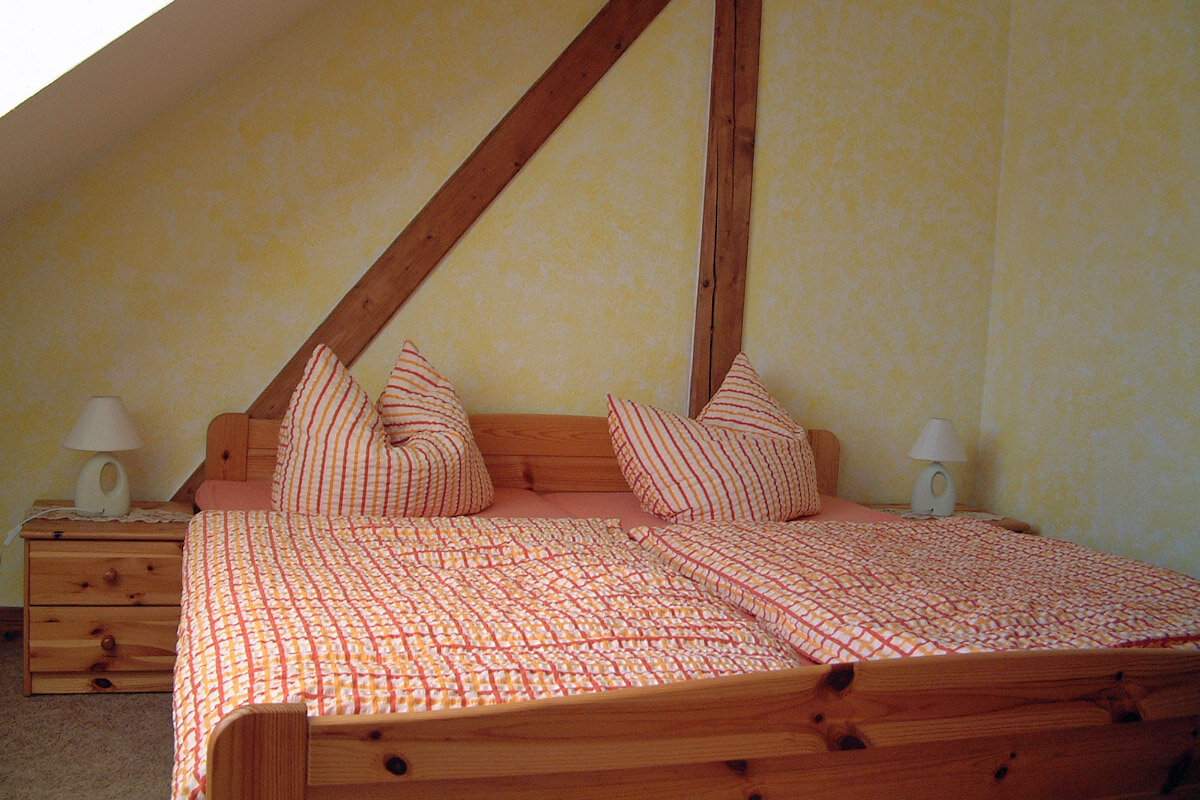 Die Ferienwohnung ist ausgestattet mit 3 Schlafräumen (gesamt 5 Betten, Aufbettung ist möglich), Wohnzimmer, Küche (mit großem Herd, Mikrowelle, Spülmaschine), Du / WC – Kinderbett ist vorhanden. Haustiere sind nach vorheriger Absprache willkommen. Kinderreiten ist nach Absprache mgl.