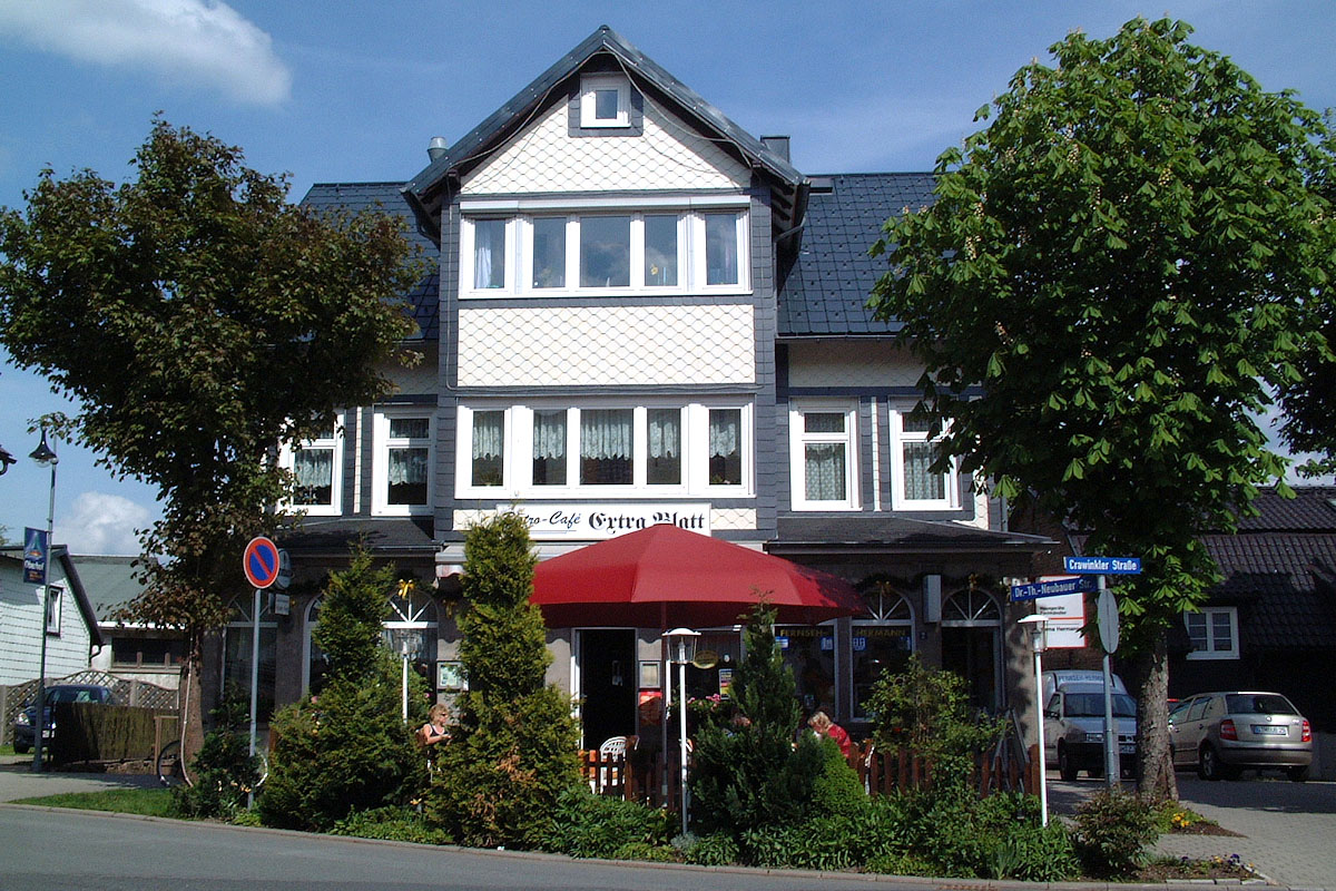 Das im Erdgeschoss unseres Hauses gelegene Café/Bistro ist über einen separaten Eingang zu erreichen. Hier werden Ihre kleinen und großen Wünsche nach Speis und Trank ebenso rasch wie gut erfüllt.