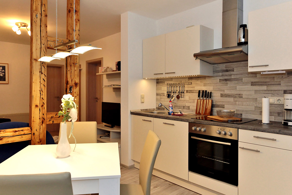Die im Jahr 2016 komplett sanierte und modernisierte Wohnung, mit einer Größe von ca. 45 m², ist bestens ausgestattet. Neben Dusche/WC verfügt sie über einen modernen Küchenbereich. Zu Ihrer Unterhaltung stehen SAT-TV, Radio und Bücher bereit. Bettwäsche und Handtücher stellen wir natürlich zur Verfügung.