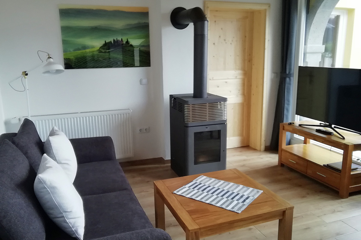 Den offenen, hohen Wohnraum mit Küche haben wir nach unserer langjährigen Erfahrung und der Kenntnis der Wünsche unserer Gäste eingerichtet, so dass es Ihnen an Ausstattung und Gemütlichkeit nicht fehlen sollte. Ein weiterer Wohlfühlfaktor für kühlere Tage ist neben einer Fußbodenheizung ein Pelletofen, den Sie individuell und einfach zusätzlich nutzen können.