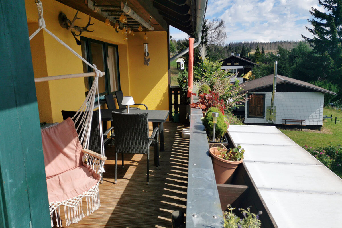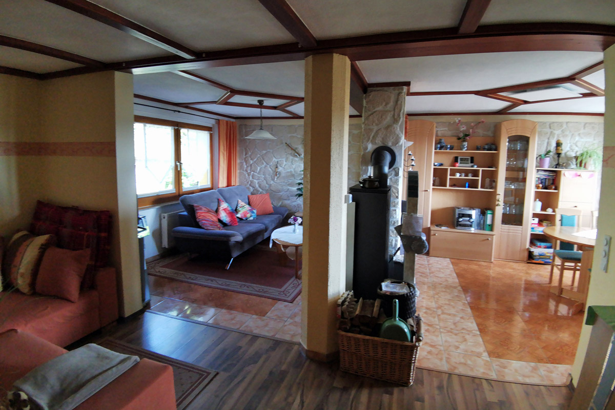 Die 70 m² Ferienwohnung befindet sich im Erdgeschoss und bietet Platz für bis zu 6 Personen. Genießen Sie die herrliche Ruhe und den einzigartigen Blick über die Wälder und Täler des Thüringer Waldes.